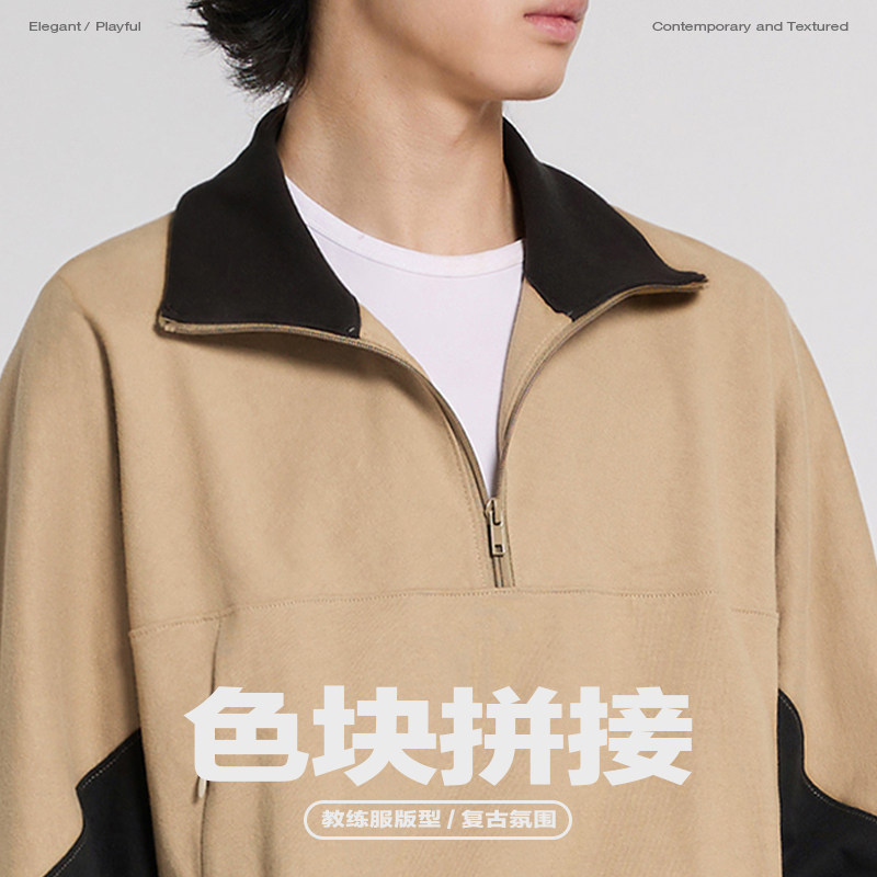 速写outlets奥莱男装春秋折扣新款卫衣宽松棉质套头长袖拼色外套
