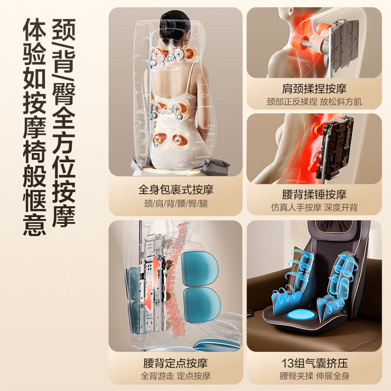 13组气囊揉捏 双机芯定点按摩 温感热敷