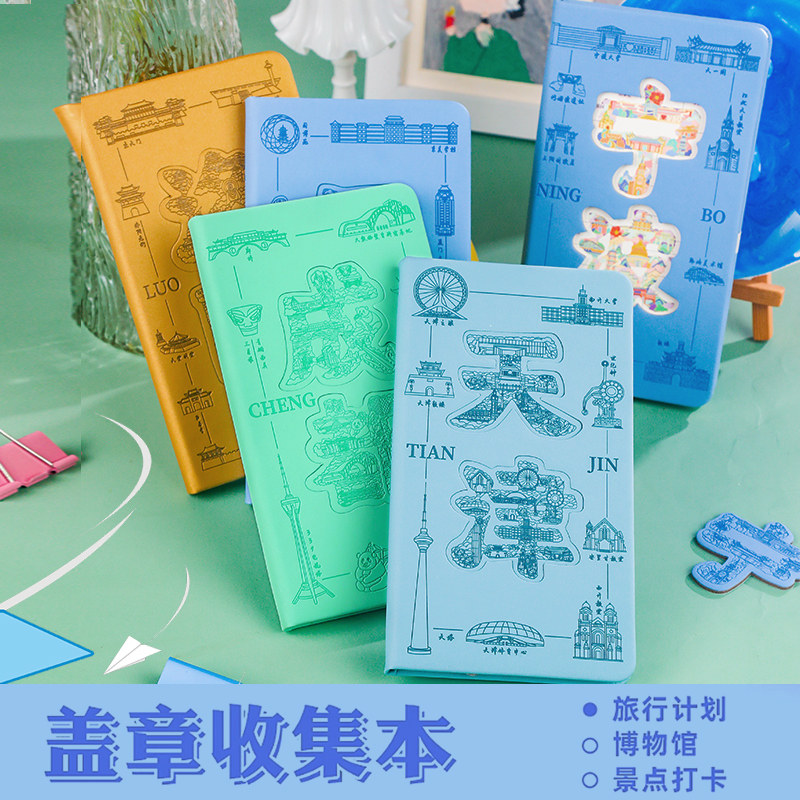 旅行盖章收集本印章博物馆集章册记录北京旅游纪念本子打卡手帐邮戳西安的景点参观本故宫必备空白冰箱贴本子