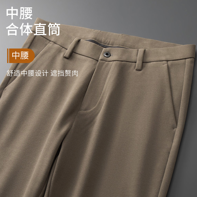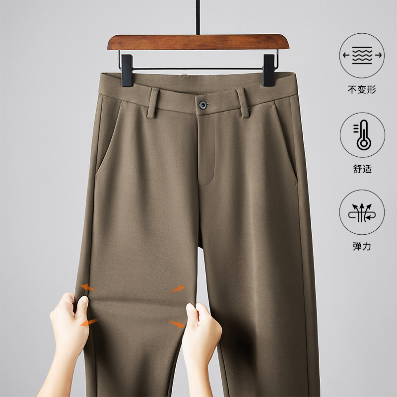 罗蒙加绒加厚男士休闲裤商务休闲秋冬季新款弹力直筒西裤秋冬款