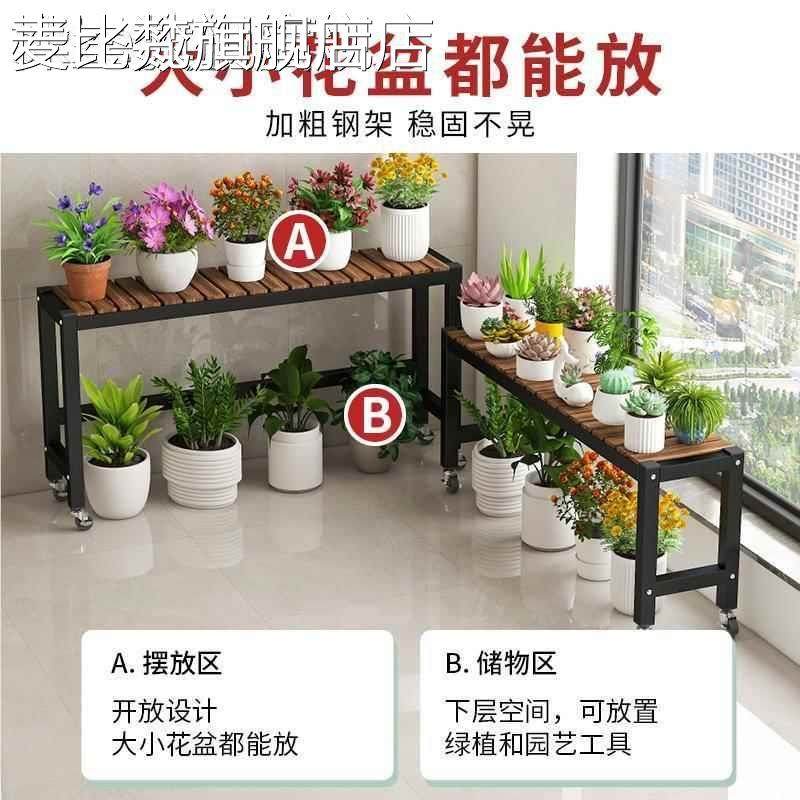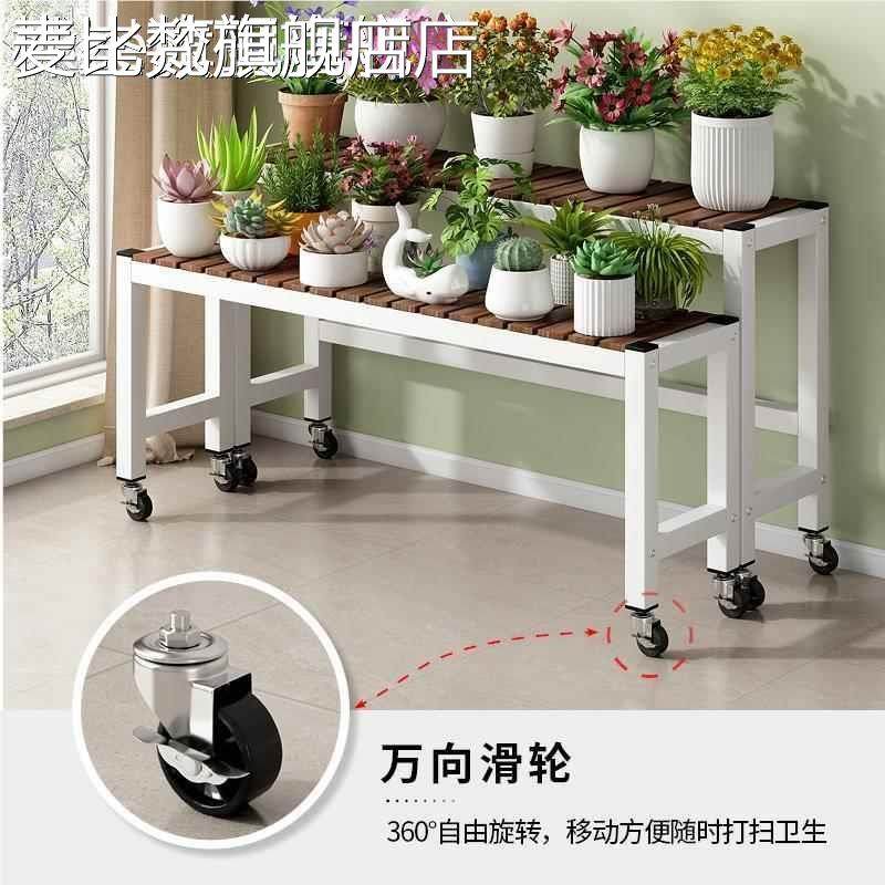 麦比梵阳台花架子2024新款移动带轮客厅落地式置物架实木阶梯铁艺花盆架床笠拉车