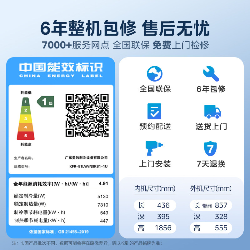 美的空调酷省电二代大1.5匹1P新一级能效变频省电挂机官方旗舰店