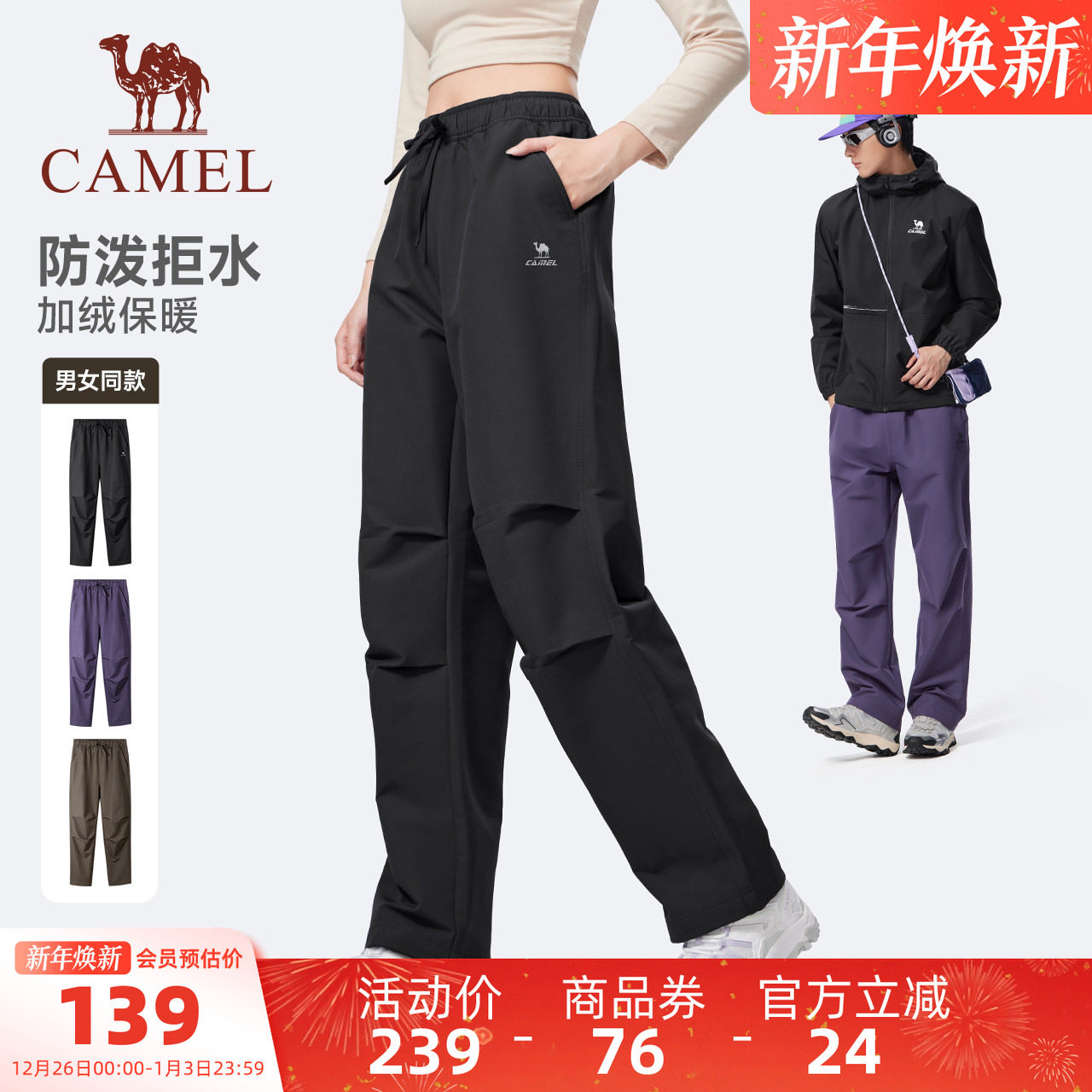 骆驼运动加绒长裤25秋冬男女同款直筒宽松工装裤户外防泼水登山裤