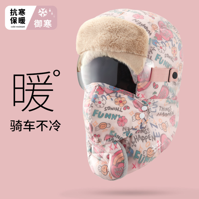 jeep吉普冬季雷锋帽女士户外防风防寒面罩保暖加绒加厚骑行帽子女