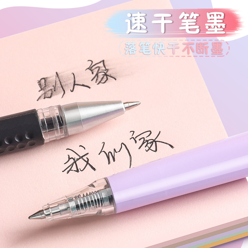 晴耕雨读刷题笔专用高颜值速干按动中性笔ins黑笔圆珠笔ST笔学生用考试笔顺滑0.5笔芯黑色水性签字笔水笔碳素