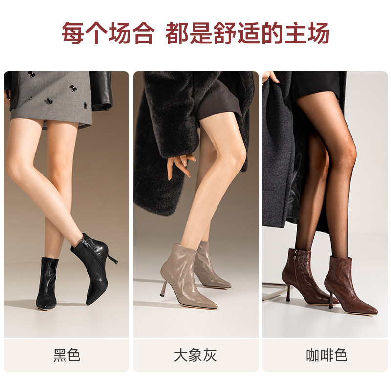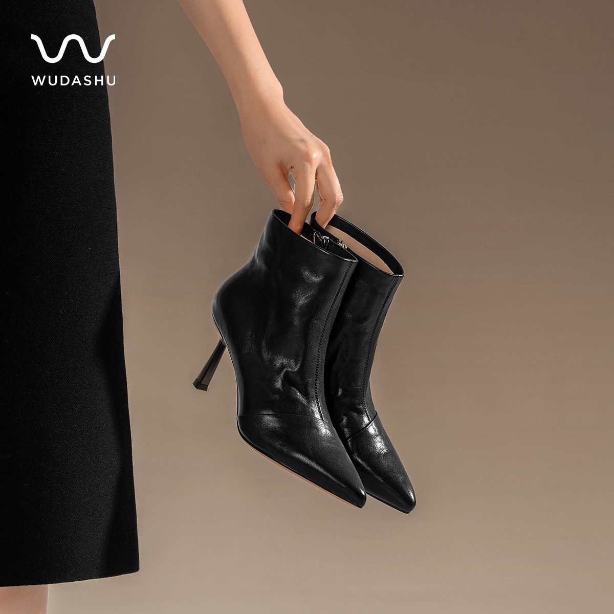 吴大叔2025秋冬新款短靴气质感时尚百搭尖头高跟女靴真皮气垫靴子