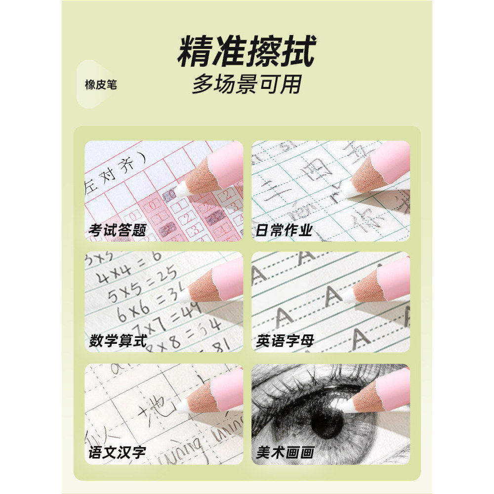 猫太子铅笔型橡皮擦精准擦拭橡皮笔铅笔式粗杆可擦笔无屑超干净小学生考试美术生专用绘画素描儿童幼儿园无毒