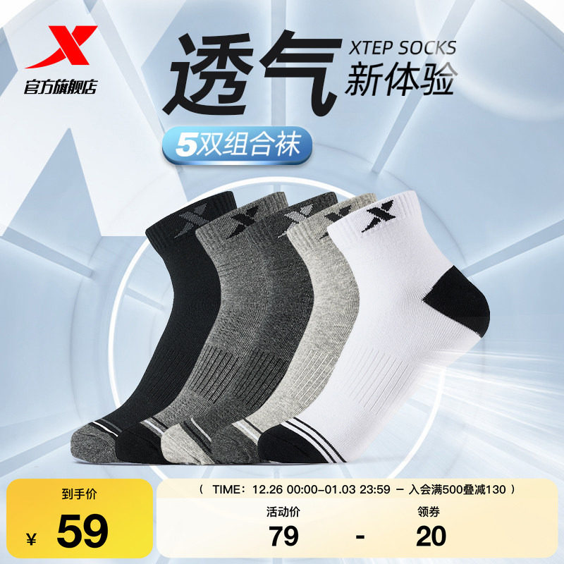 3双装特步休闲袜男袜子2025秋季官方女袜透气跑步袜子船袜短袜