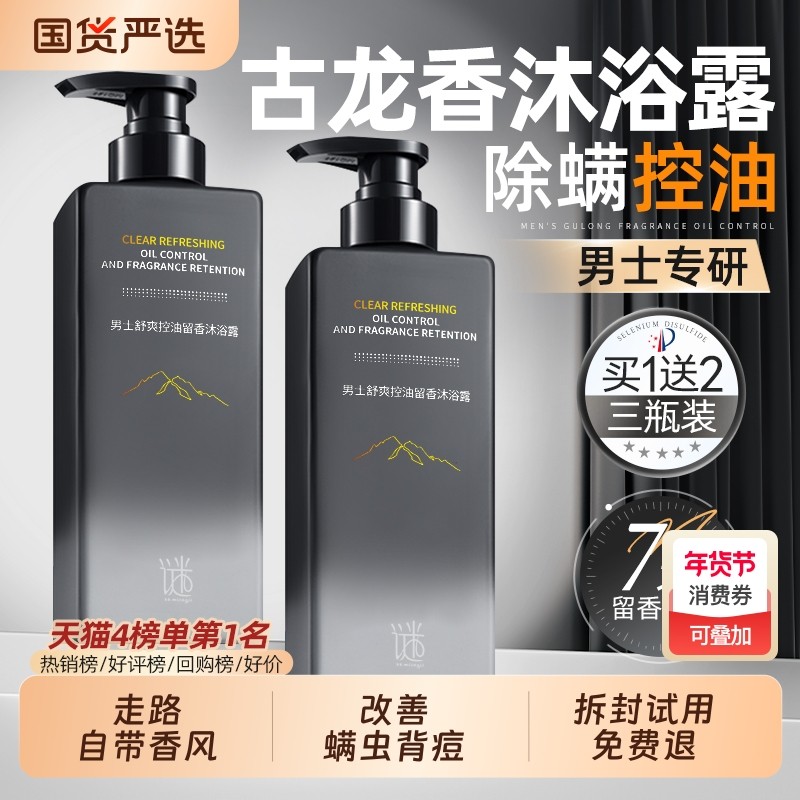古龙香男士沐浴露持久留香除螨祛痘三合一专用正品官方旗舰店品牌