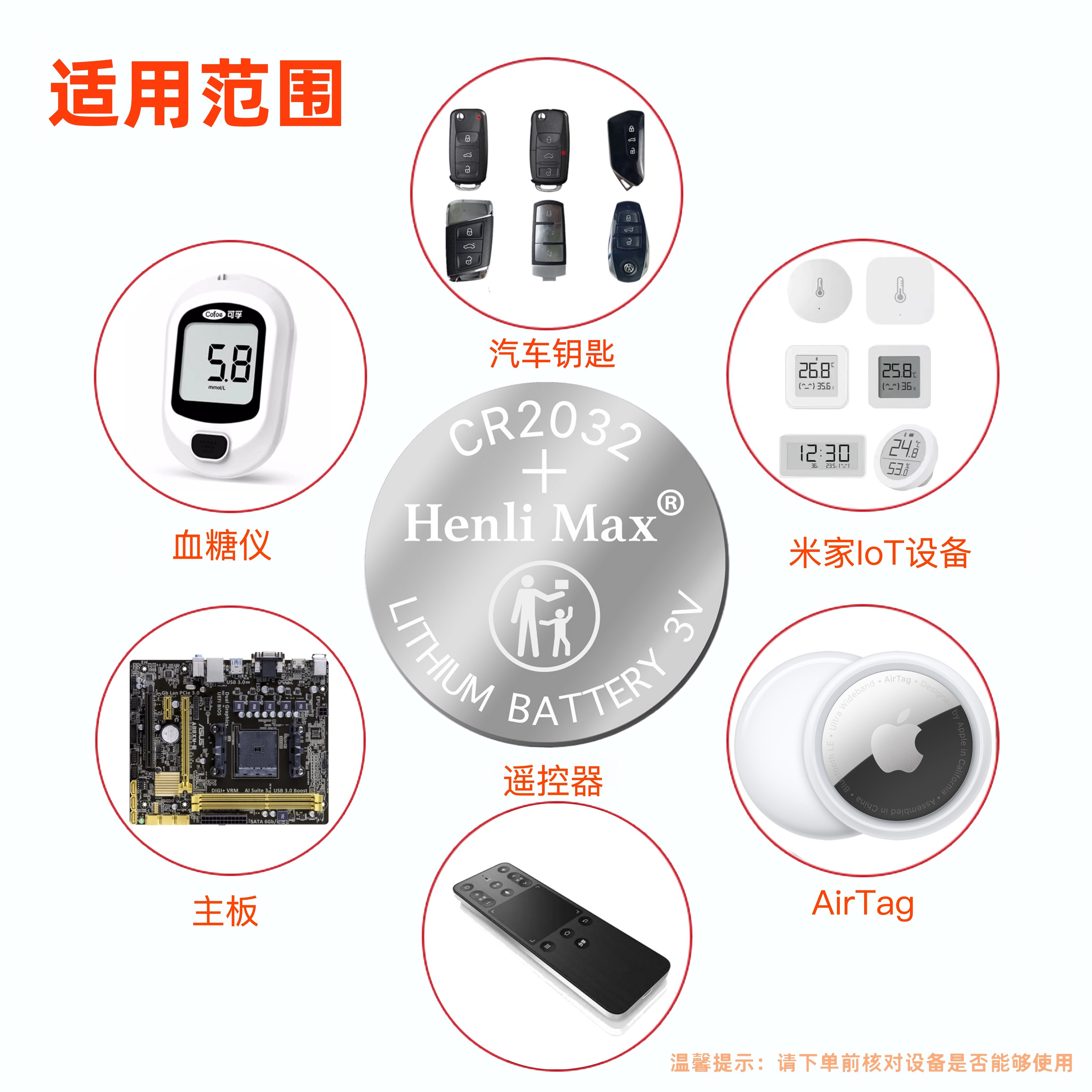 CR2032纽扣电池HenliMax适用可孚逸测A03血糖仪鱼跃罗氏强生三诺