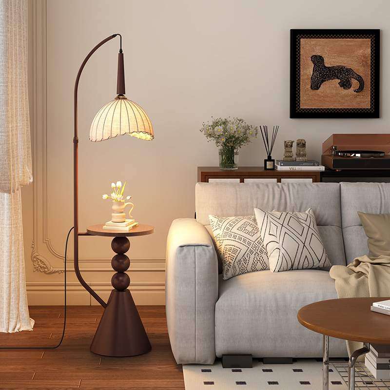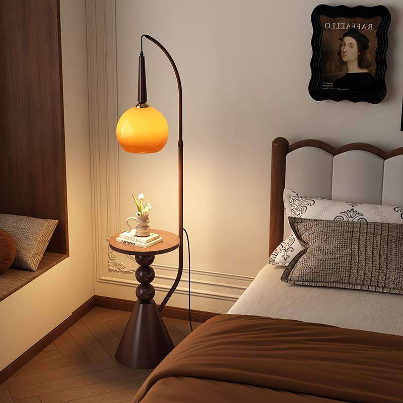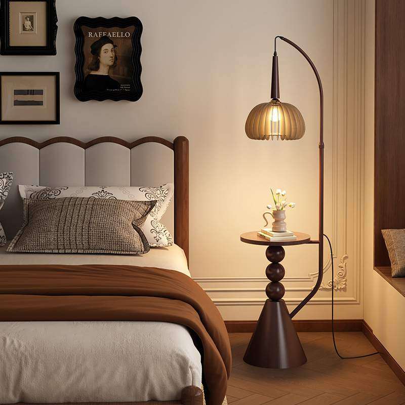 落地灯置物架一体中古风客厅高颜值卧室床头灯氛围感护眼柜台灯
