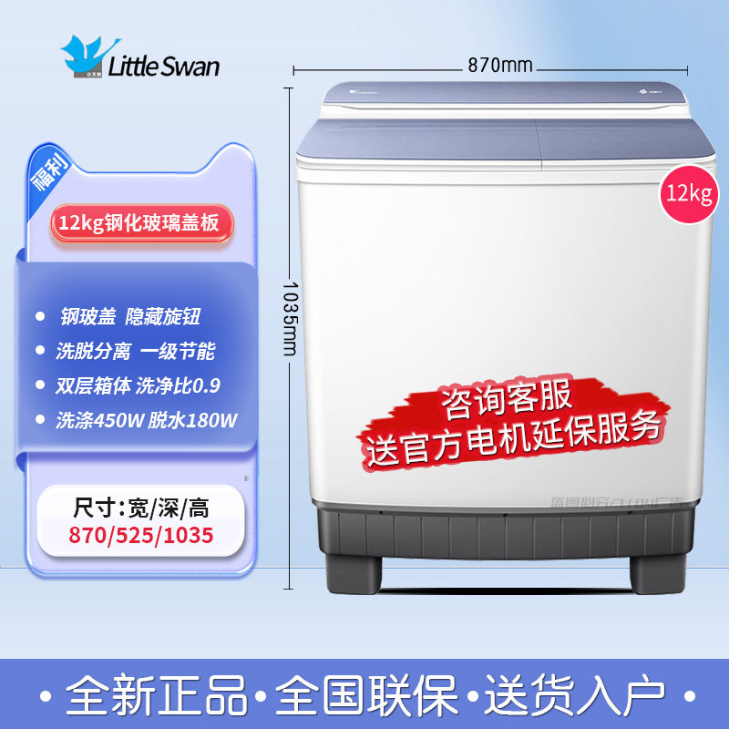 小天鹅 12kg半自动洗衣机家用双缸/桶老式波轮大容量10-20kg
