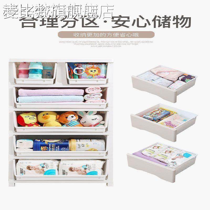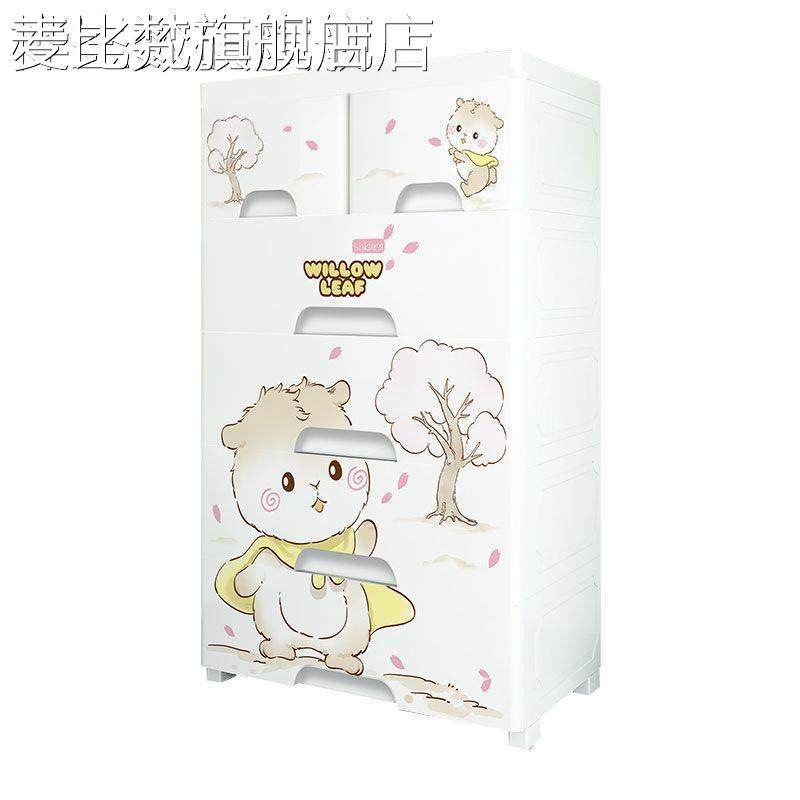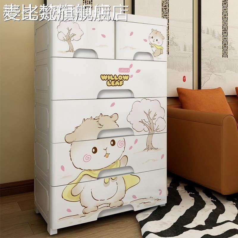 麦比梵儿童五斗柜卡通收纳柜子抽屉式储物柜塑料玩具加厚收纳箱宝宝衣柜摆件垫垫床笠拉车