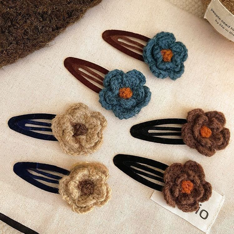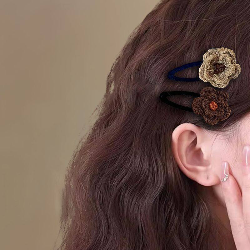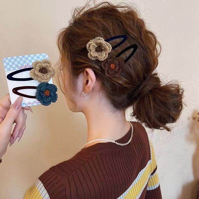 序曲~发夹女毛线花朵边夹bb夹侧边前额刘海夹子新款发卡头饰短发