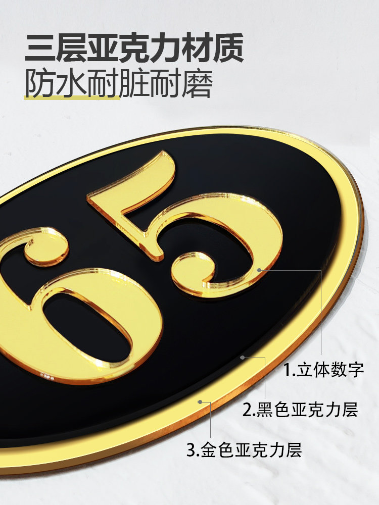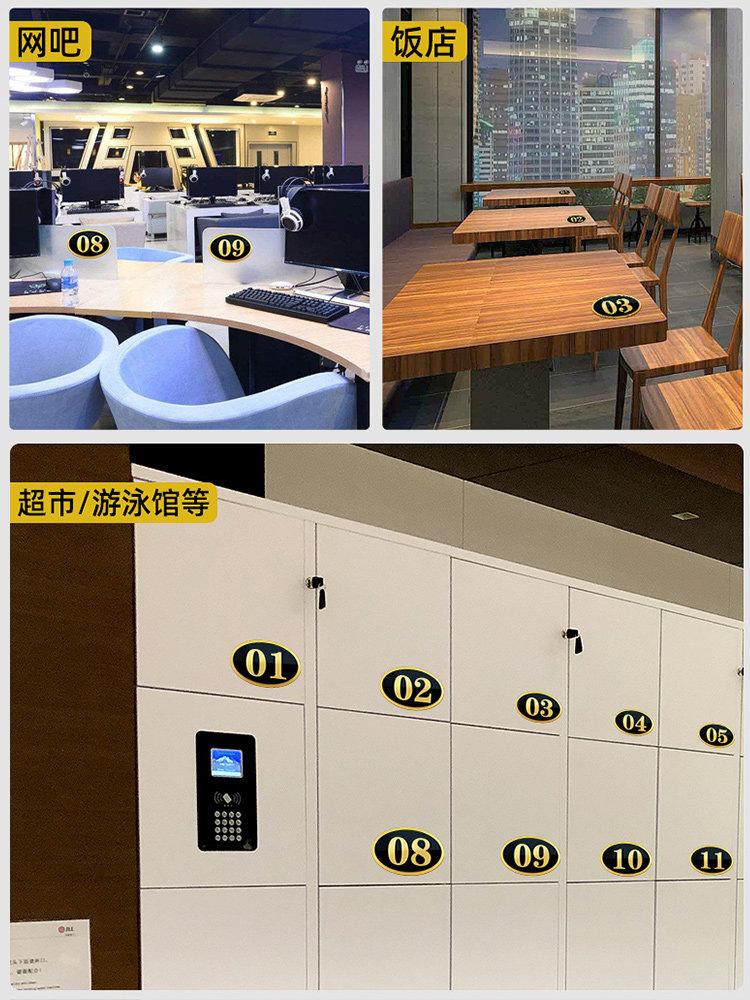 金色亚克力数字号码牌桌子编号贴桌号门牌号码牌家用贴纸网吧座位餐桌房间储物柜更衣柜号码贴标识编号贴定制