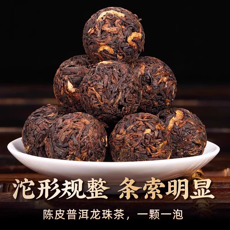 新益号普洱茶熟茶十年以上陈皮普洱龙珠正宗新会柑普茶自己喝茶叶