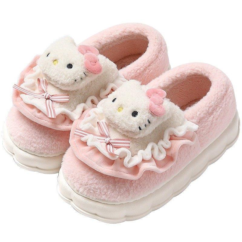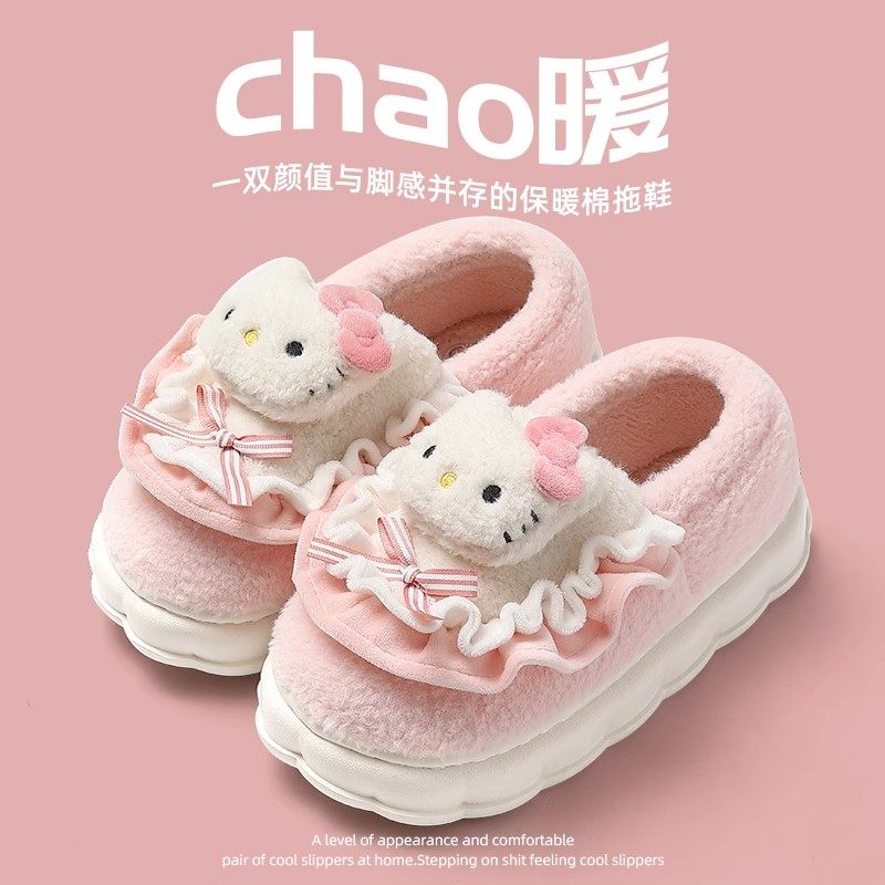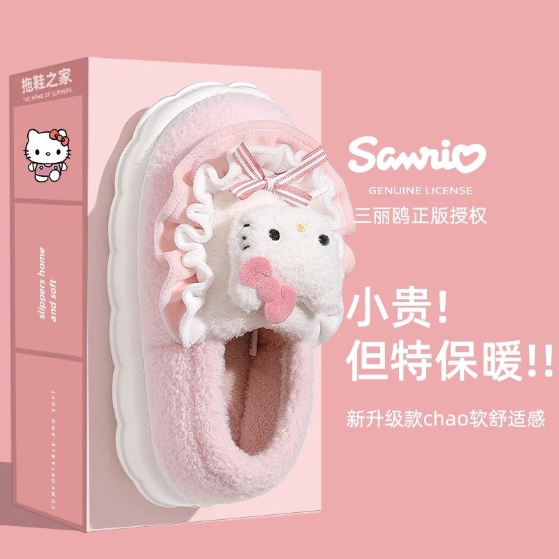 HelloKitty棉拖鞋女士冬季2025新款包跟保暖厚底可爱毛绒绒外穿女