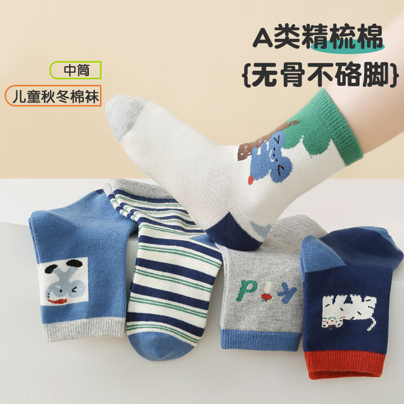 六指鼠无骨男童袜子秋冬款中筒学生男孩a类中大童春秋季儿童棉袜