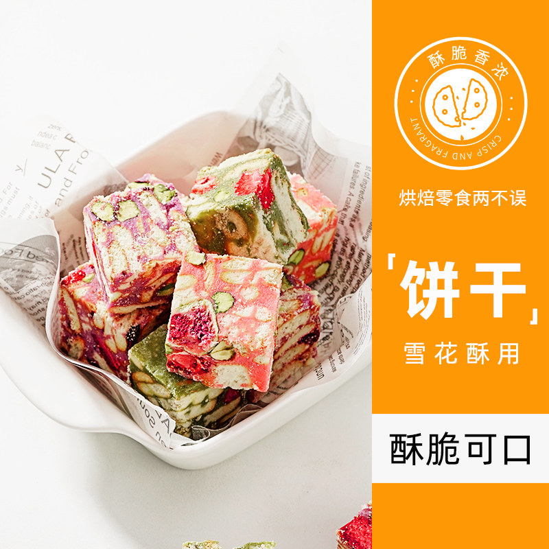 雪花酥饼干原材料小奇福饼干烘焙专用牛轧糖棉花糖休闲零食小圆饼