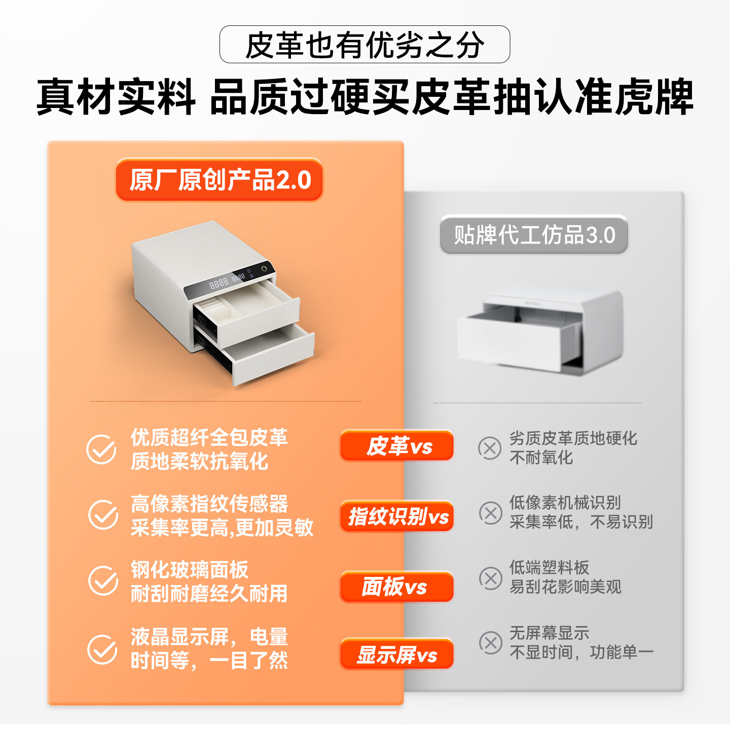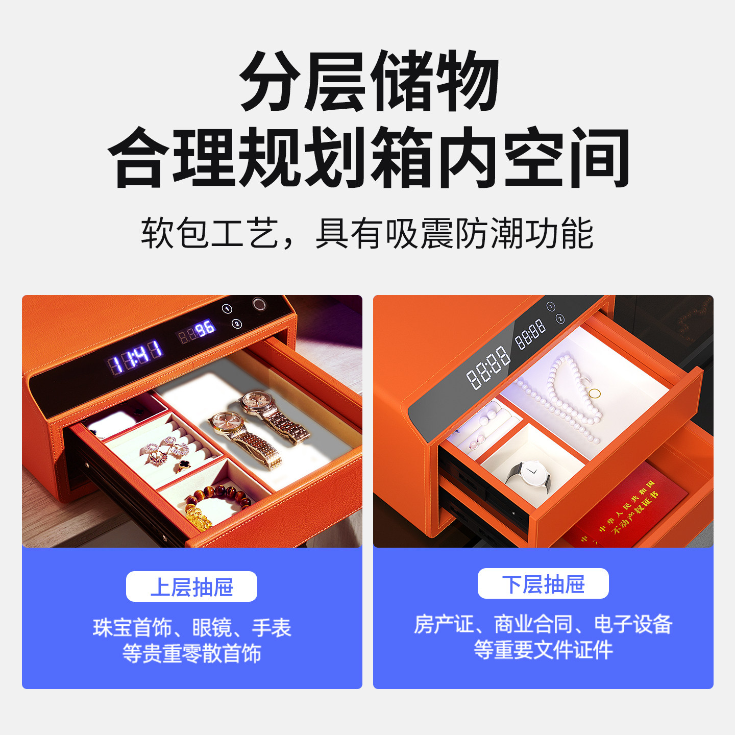 虎牌指纹蓝牙保险柜家用小型抽屉式保险箱防盗双层抽屉柜 全钢珠宝首饰盒台式收纳盒办公隐藏新品入衣柜