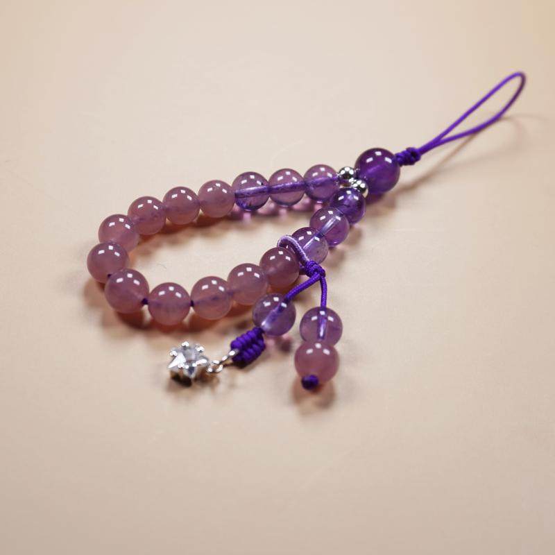 天然紫水晶手机链女短款银饰小挂件甜美粉水晶挂绳手工编织指环扣