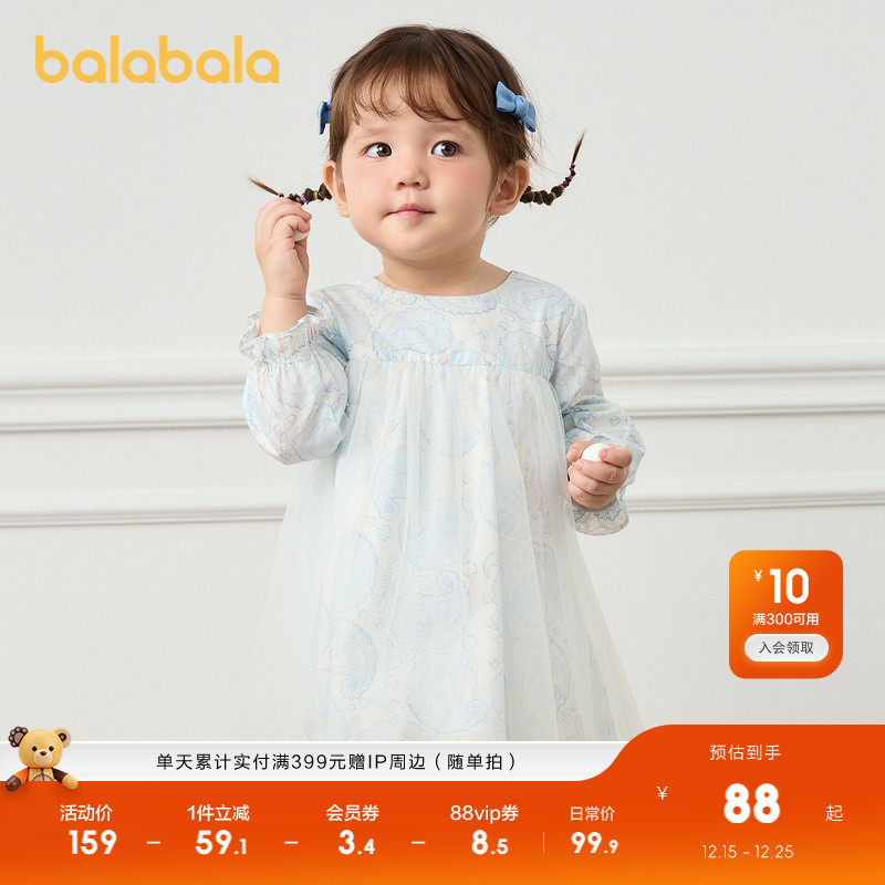 巴拉巴拉宝宝连衣裙蓬蓬网纱裙A字裙女童装2025秋季新款裙子儿童