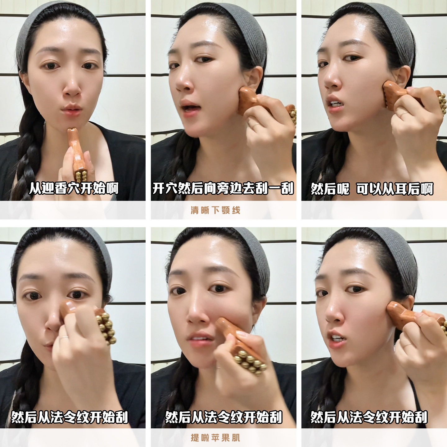 黄铜金珠樽花梨木面部筋膜提升工具法令纹苹果肌下颚线美容按摩器