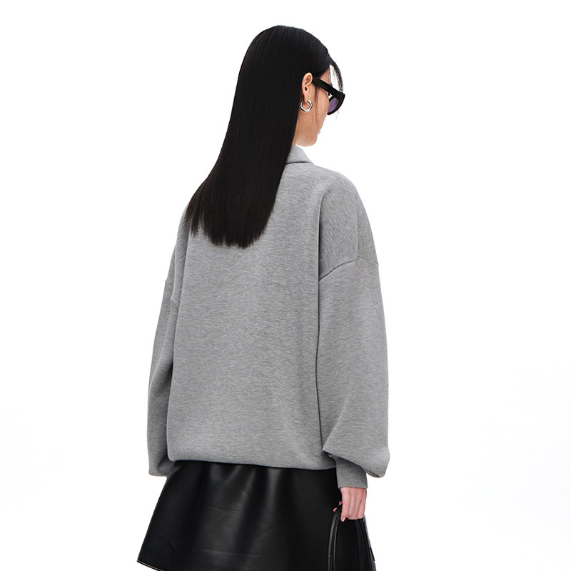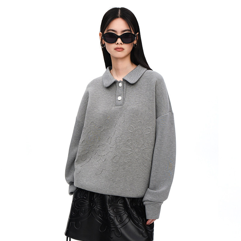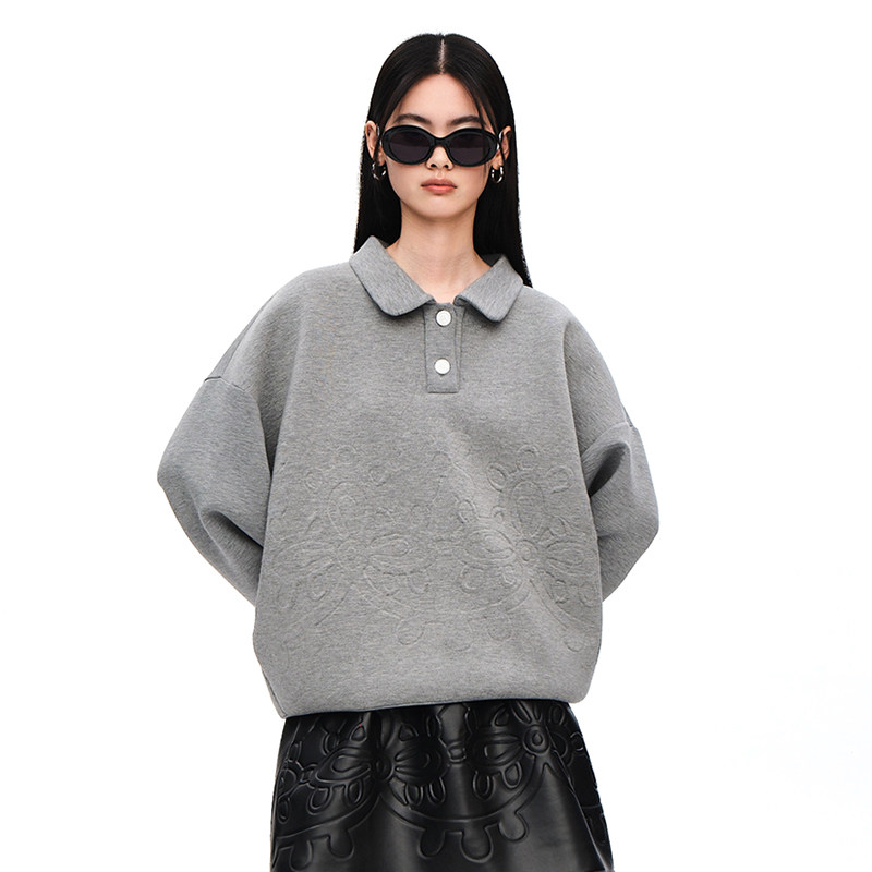 【设计师品牌XIAOLI筱李】格雷系立体压花Polo领套头卫衣空气层