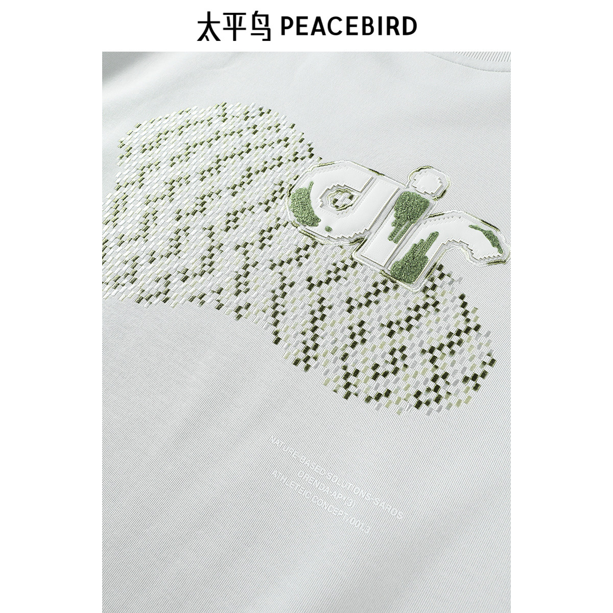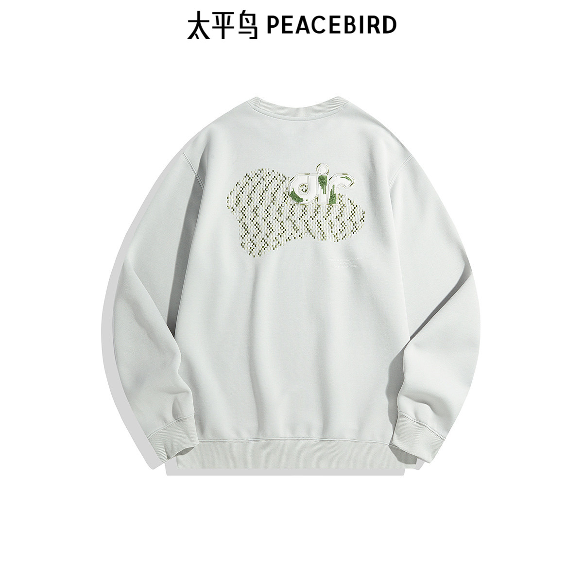 太平鸟男装空气层刺绣圆领卫衣时尚宽松套头上衣青年男士外套