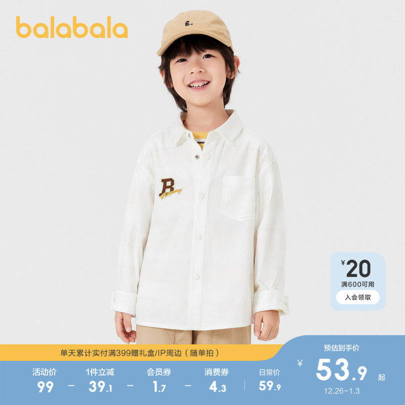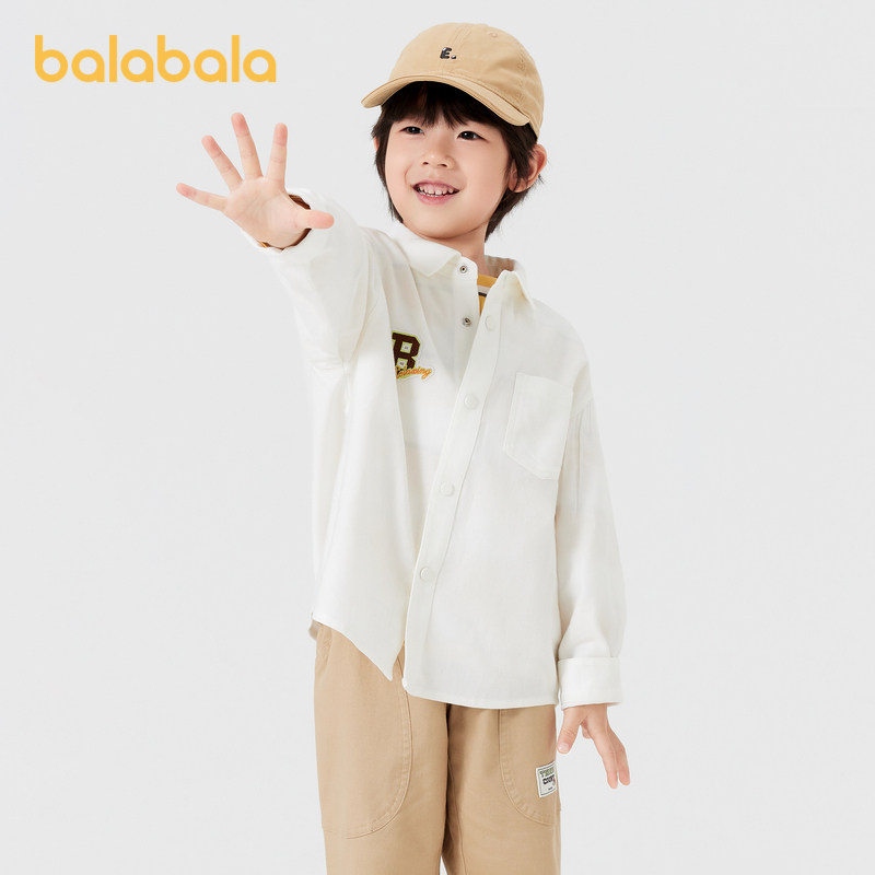 巴拉巴拉童装儿童衬衫男童宽松白衬衣外穿内搭秋季长袖上衣百搭潮