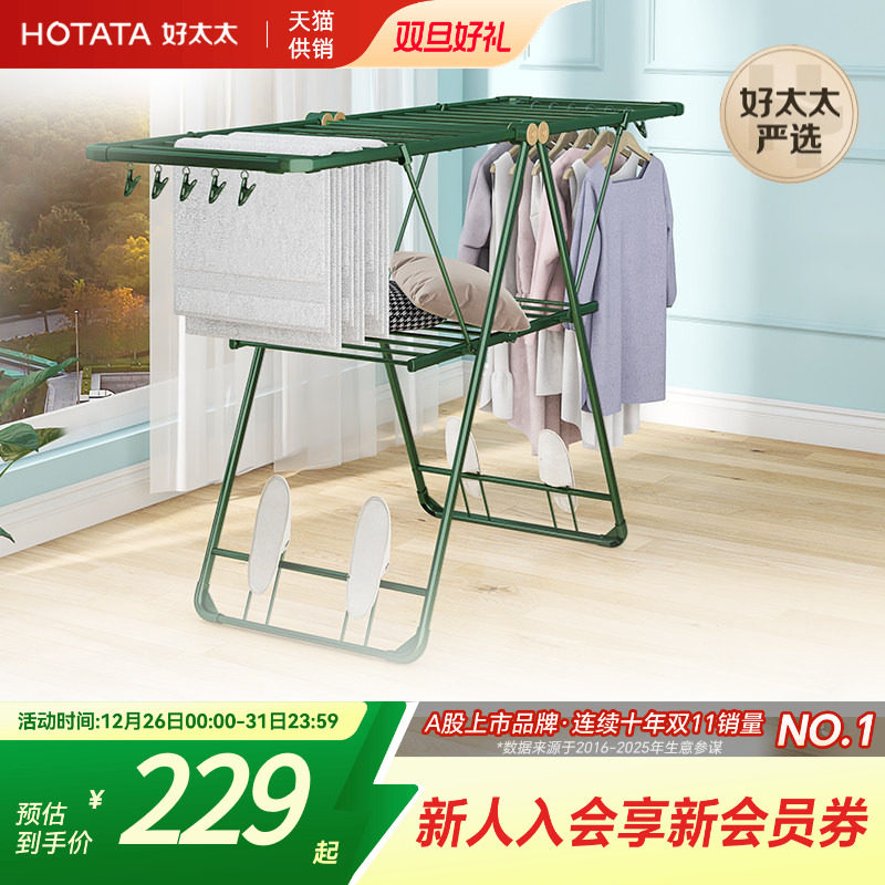 【国补】佳帮手奶油折叠晾衣架室内阳台家用凉衣服落地晒被子神器