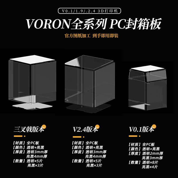 VORON 全系列PC封箱板材 高透+亮黑 适配0.1/三叉戟/2.4系列