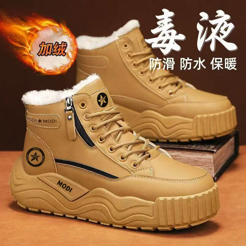 悍途加绒保暖棉鞋男士新款冬季厚底加厚防水男鞋东北运动雪地靴女