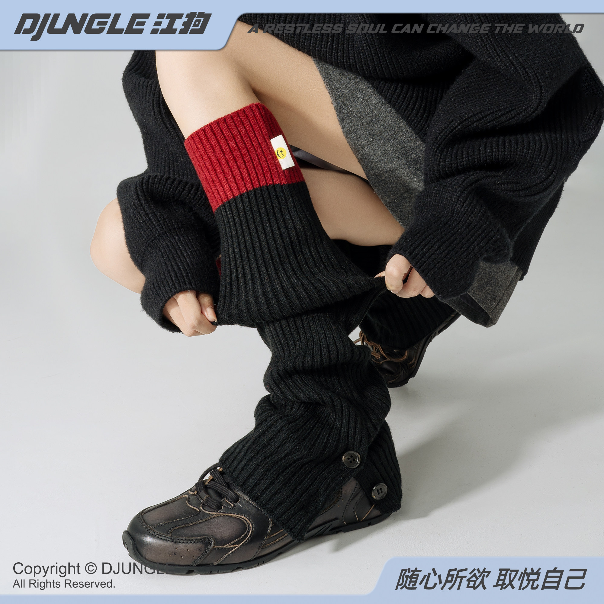 撞色袜套女春秋针织腿套时髦辣妹y2k亚文化堆堆袜小腿长袜子春季
