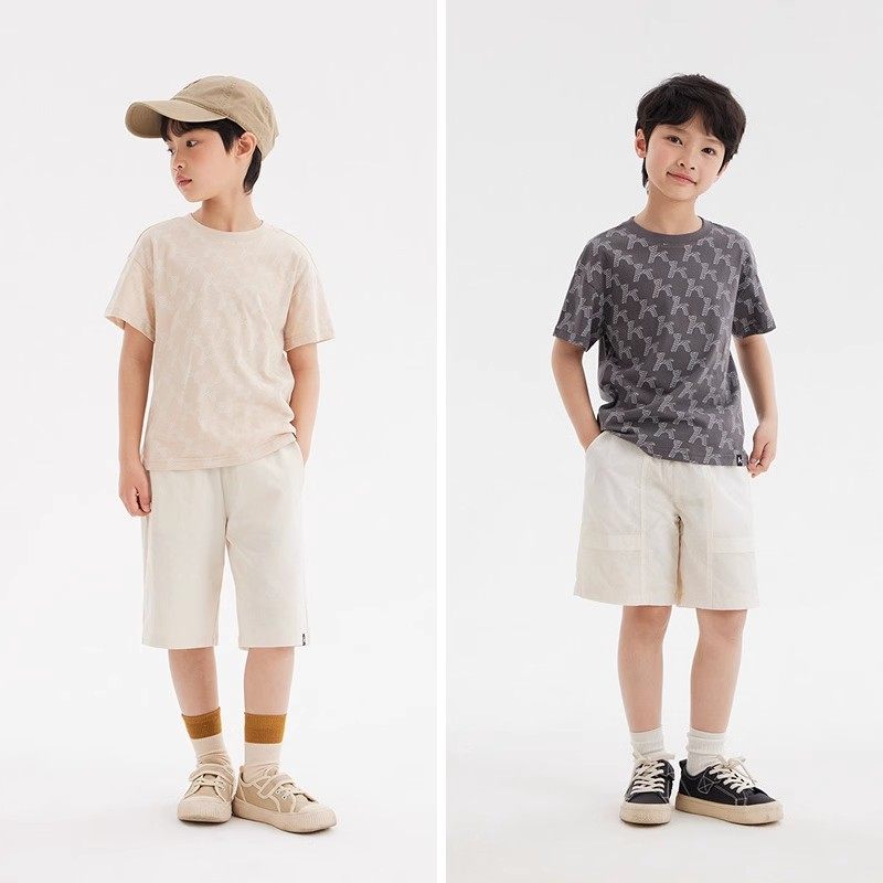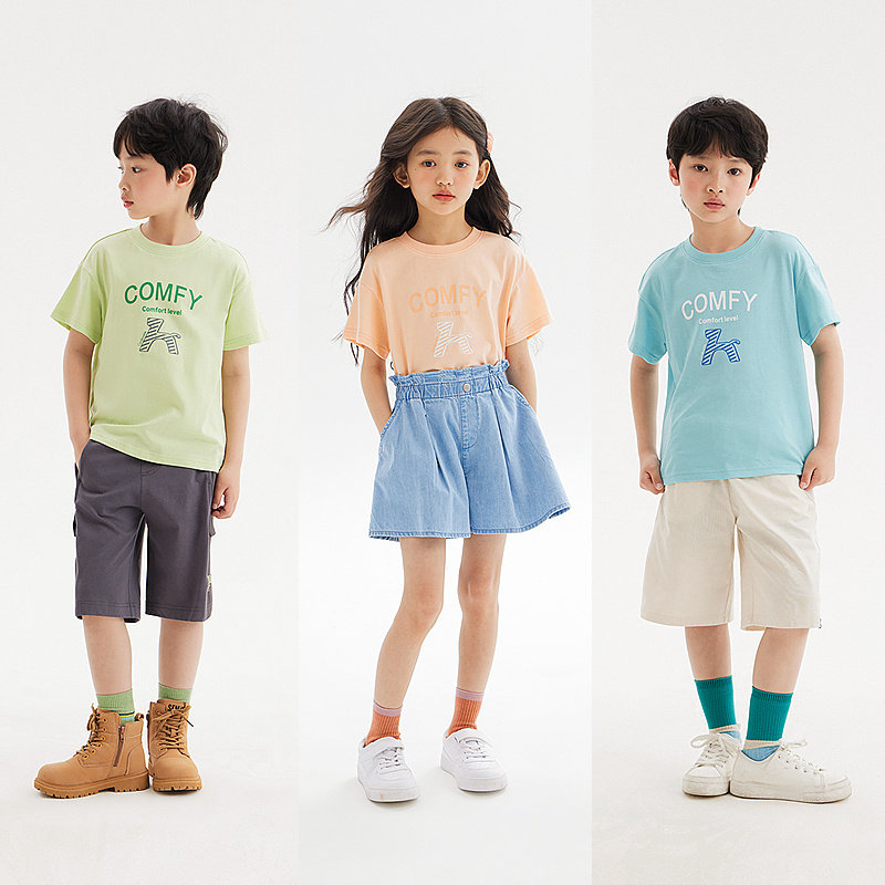 森马儿童短袖T恤时尚印花宽松针织休闲夏装男童女童洋气条纹上衣