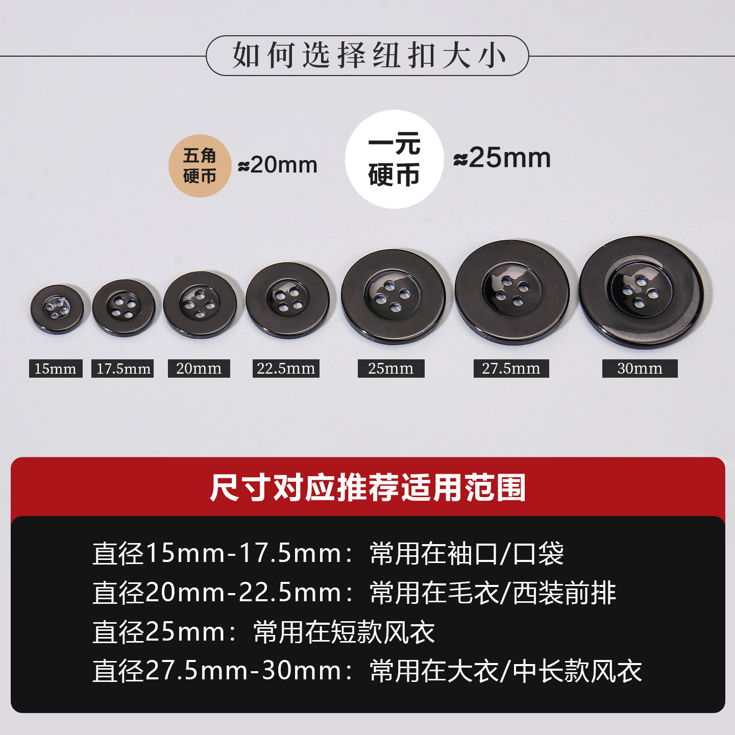 树脂纽扣大衣扣子高端精致时尚毛衣开衫衬衫扣子配件黑白四眼纽扣