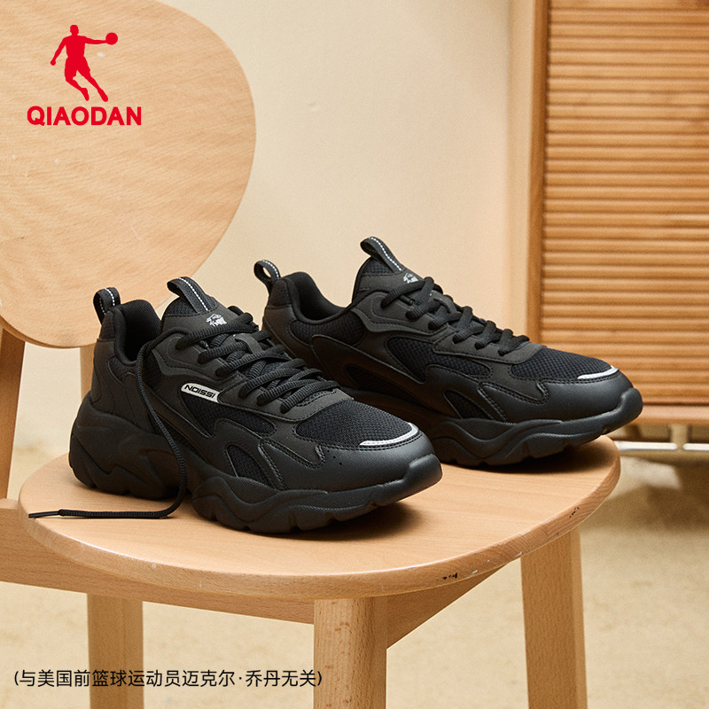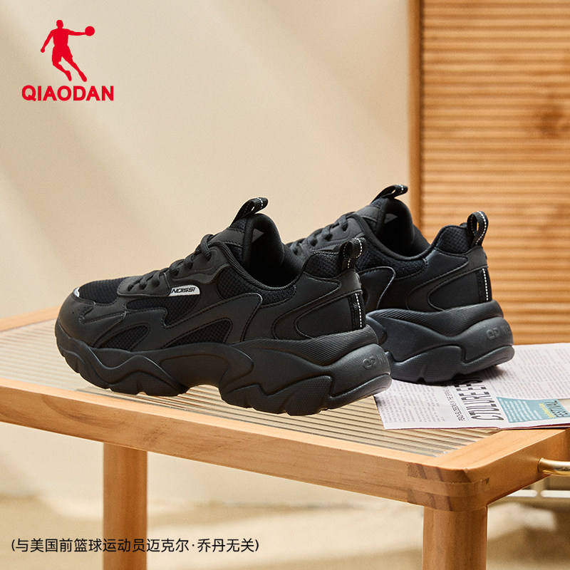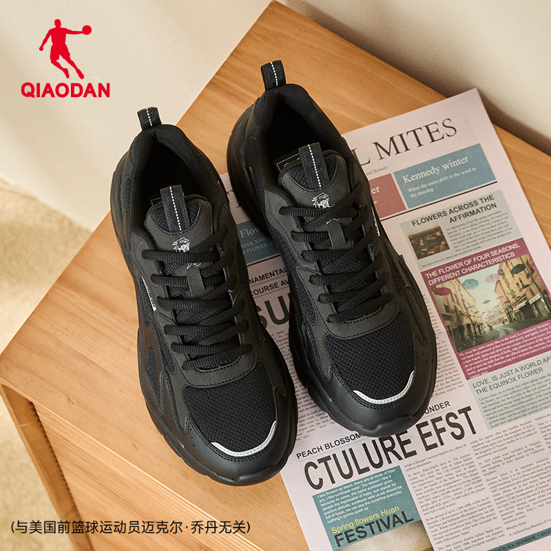 乔丹网面透气休闲鞋男运动鞋2026春季轻便黑色老爹鞋厚底增高鞋子