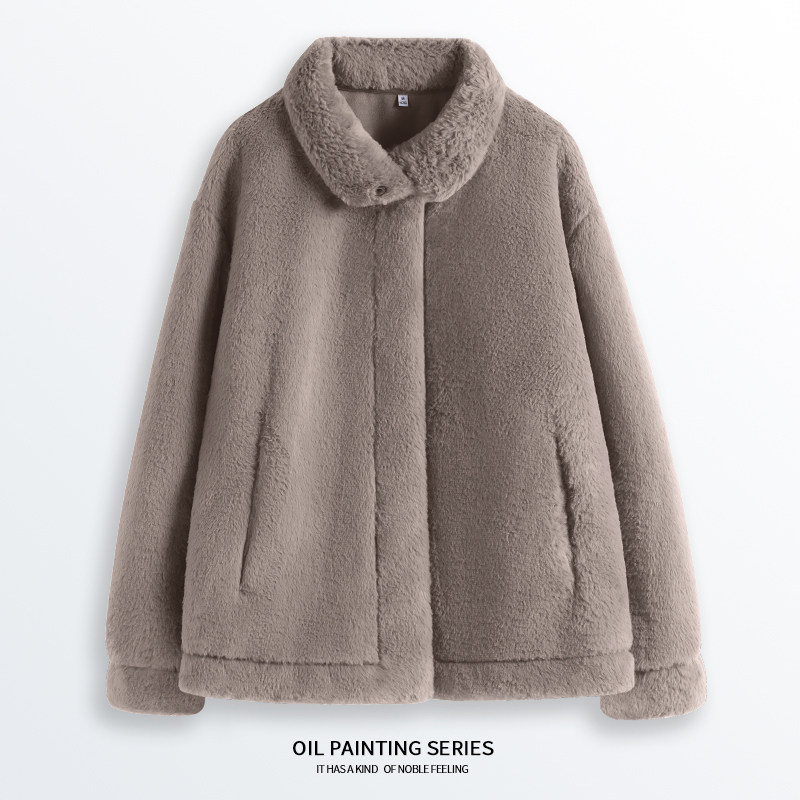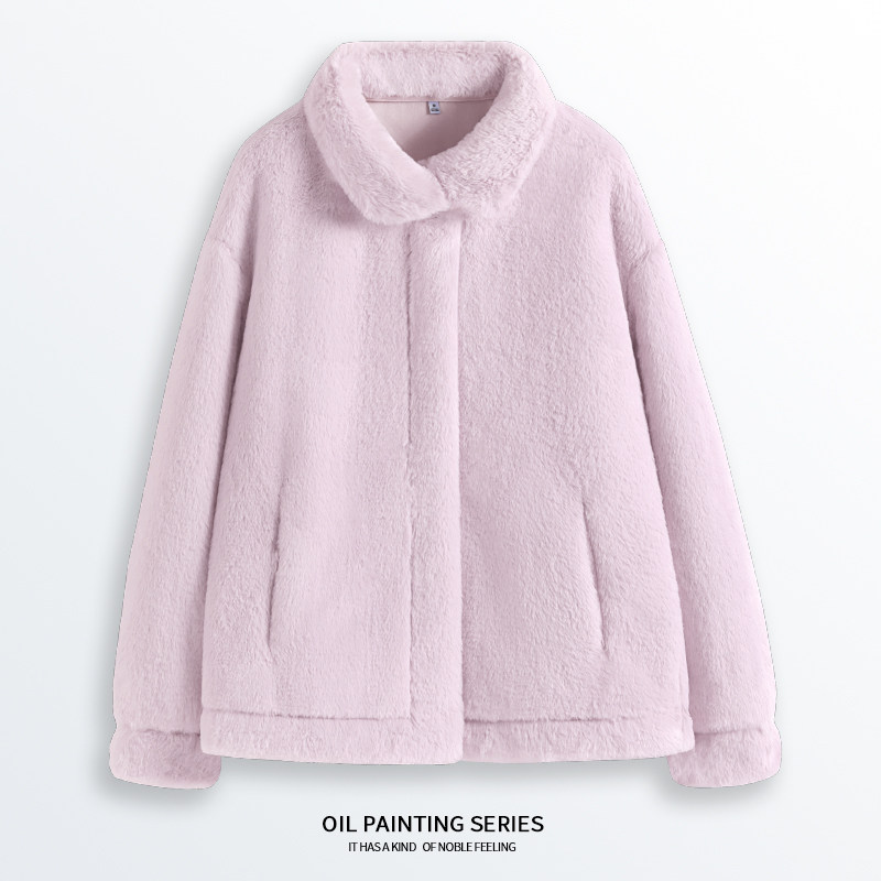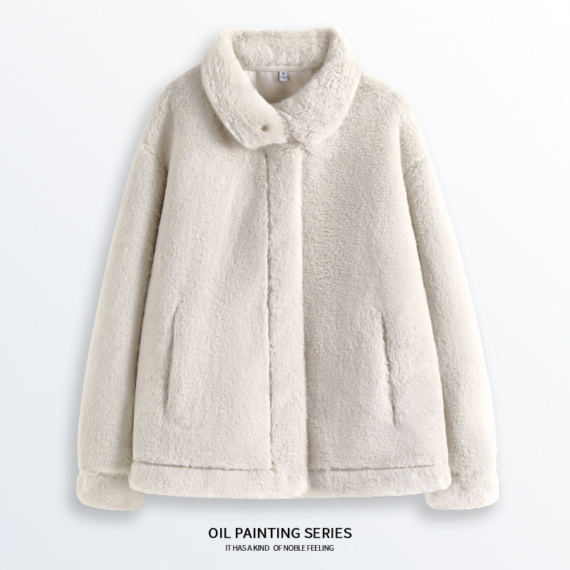 KHV真维斯秋冬季白色仿兔毛短款冬装环保皮草羊羔绒毛绒厚外套女