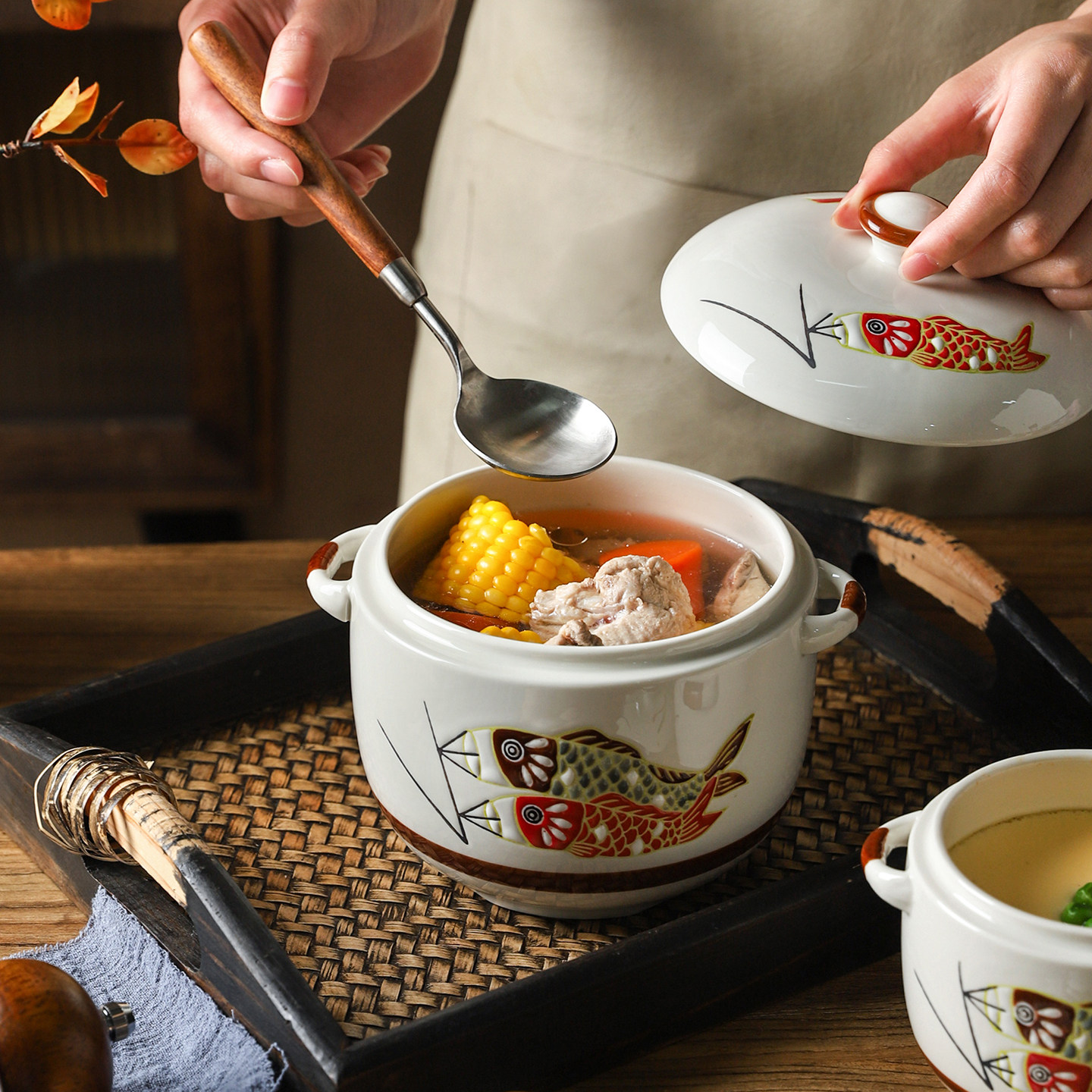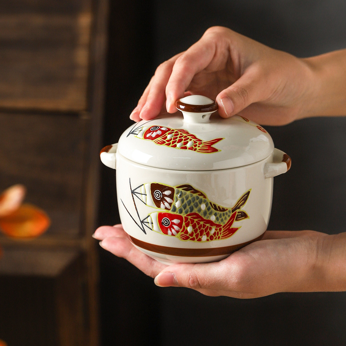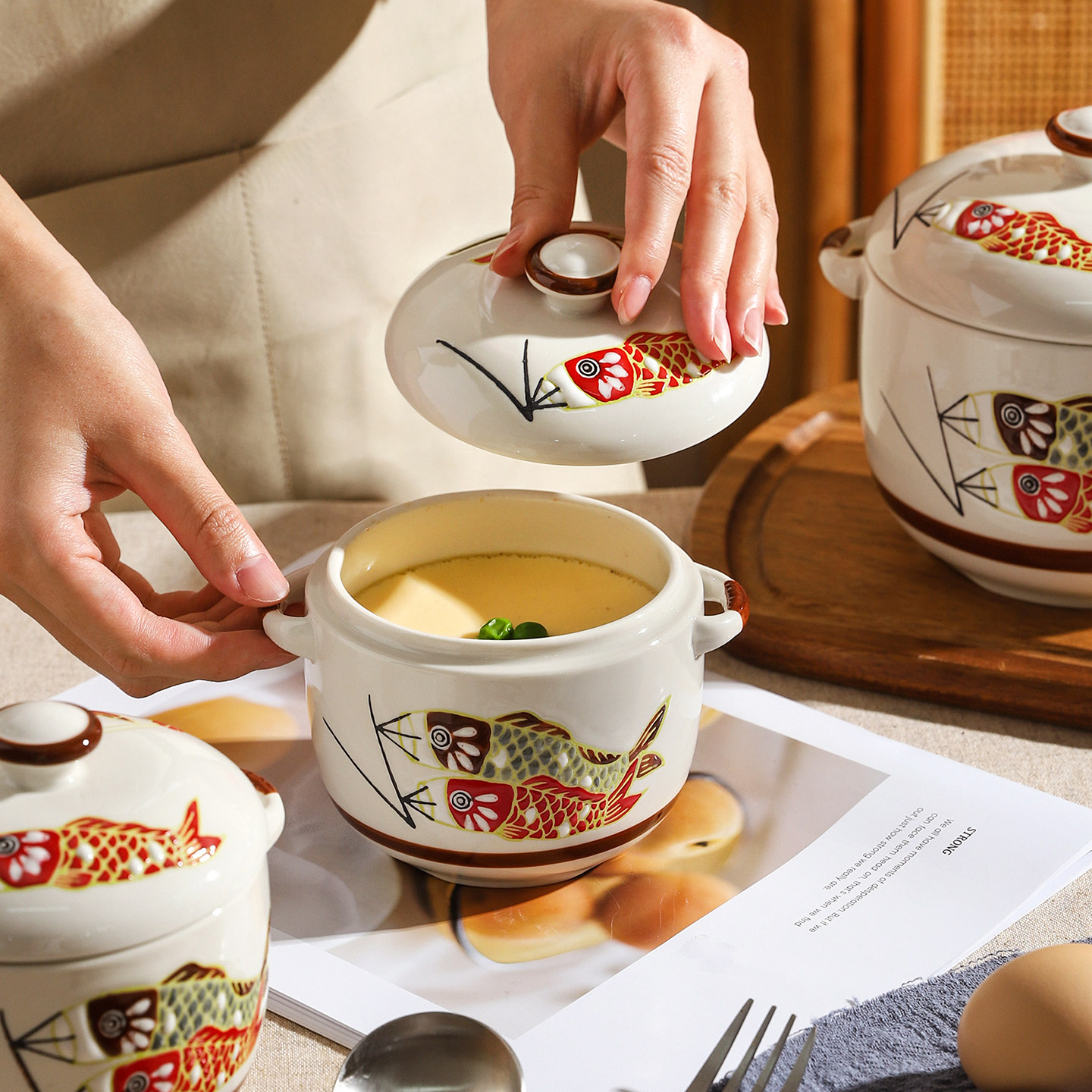 舍里日式陶瓷带盖隔水炖盅蒸鸡蛋羹专用汤盅燕窝煲宝宝辅食蒸蛋盅