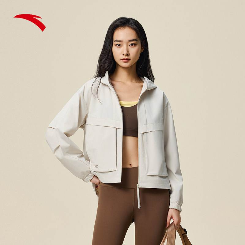 安踏工装风休闲外套女士薄款防风夹克梭织运动上衣风衣162537611N