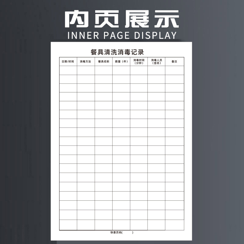 餐具清洗消毒记录本记录表消毒台账饭店酒店饭堂餐具消毒记录本厨房消毒登记本餐饮台账本食品台账明细账本