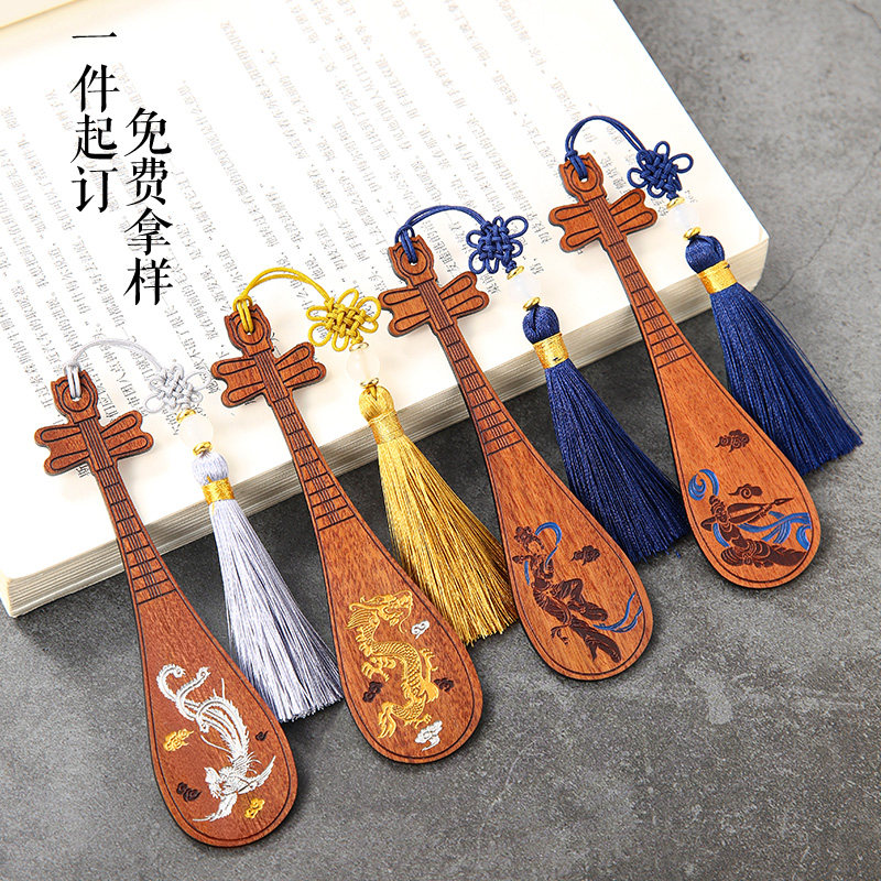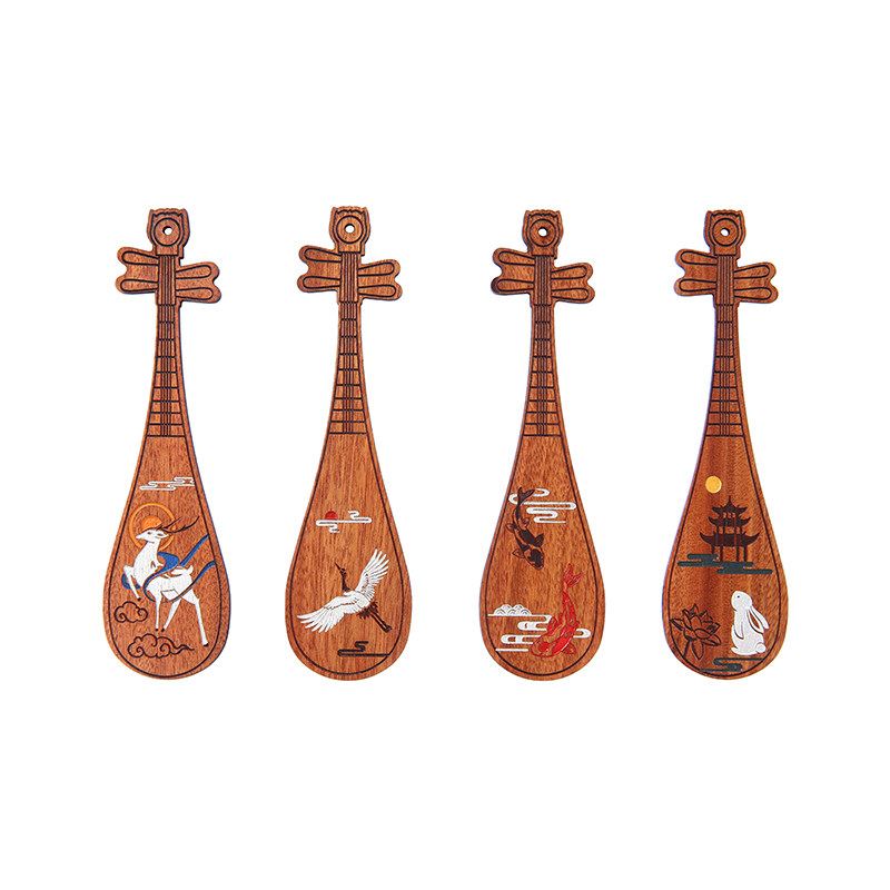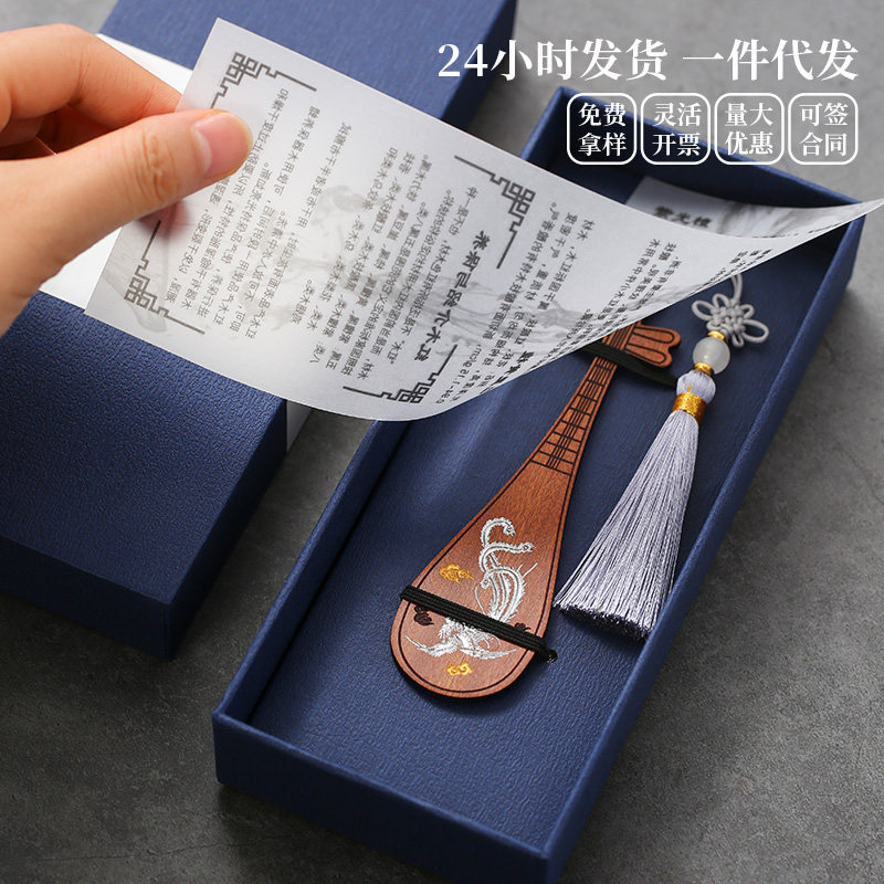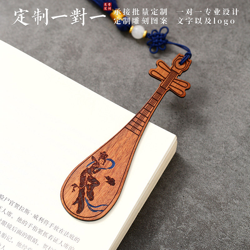 国潮红木彩绘乐器书签高档精致礼盒装定制刻字 古典中国风创意木质故宫精美博物院文创产品学生用纪念品礼物