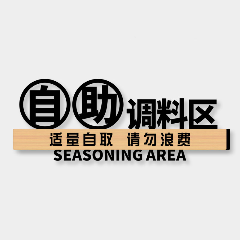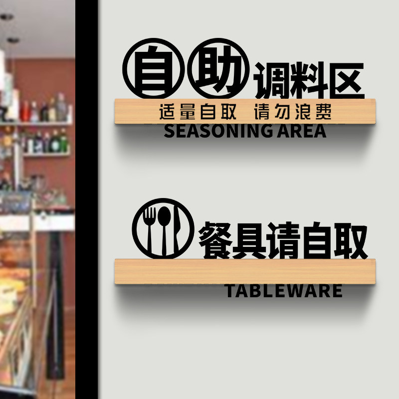 自助调料区指示牌小料台标签蘸料火锅店墙面装饰免费小菜牌厨房重地标识提示贴纸餐具请自取餐厅定制温馨门牌