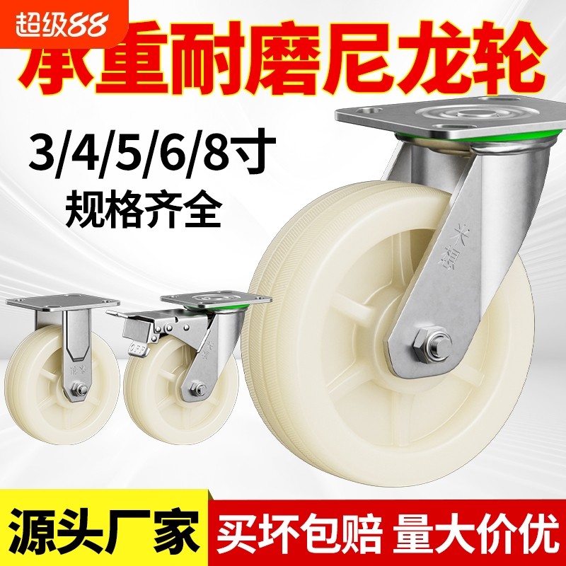 万向轮轮子尼龙轮定转向工业重型小推车板车拉车脚轮承重轱辘4568