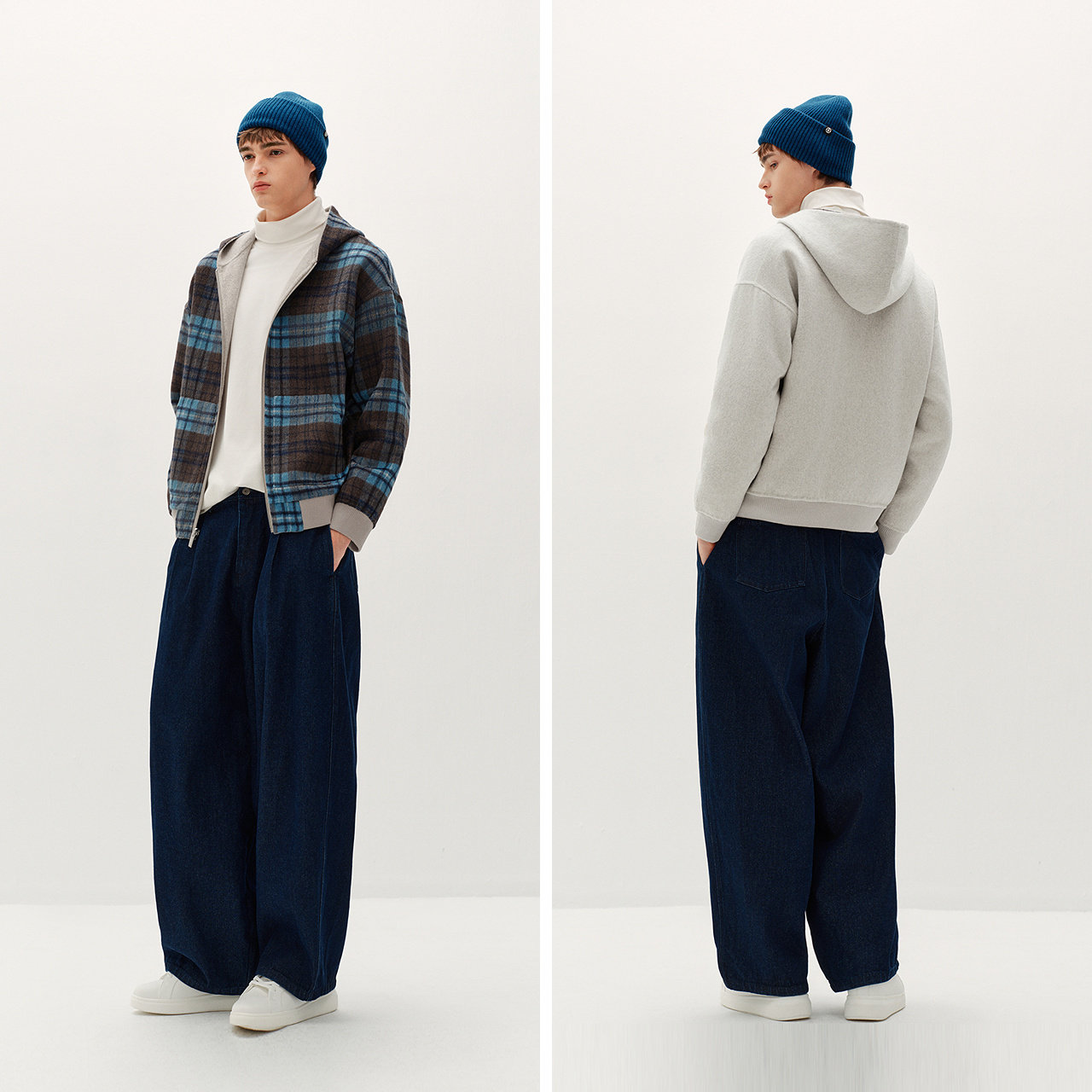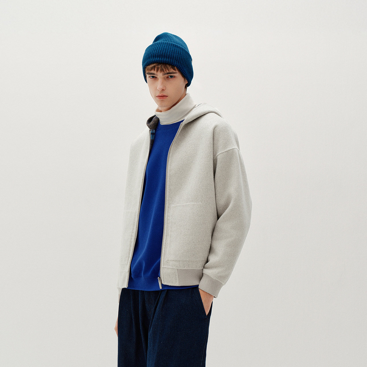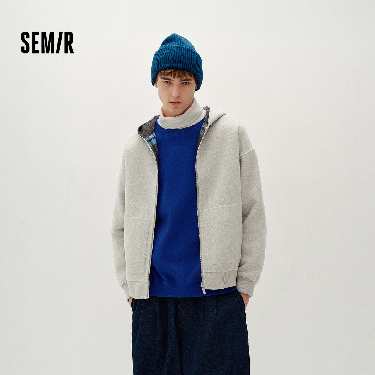 两面穿毛呢外套 宽松连帽 情侣韩系