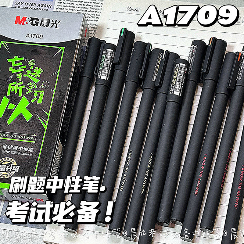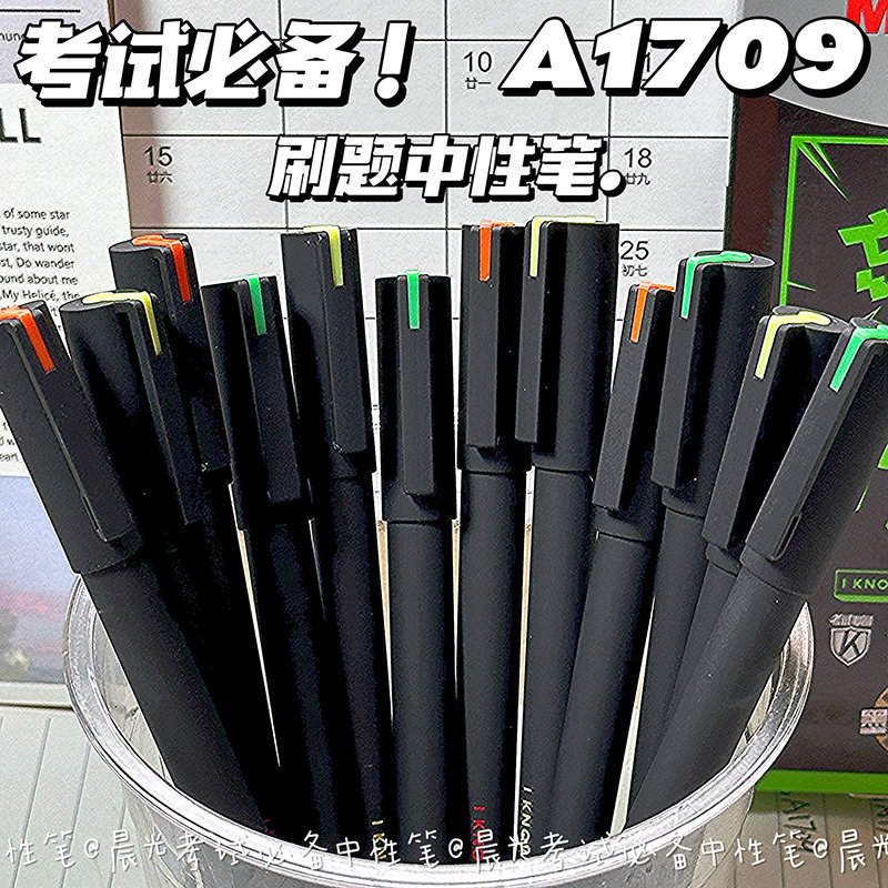 晨光文具中性笔AGPA1709磨砂杆0.5mm考试用学生碳素黑全针管水笔商务办公会议签字笔水性笔文具学生用品批发
