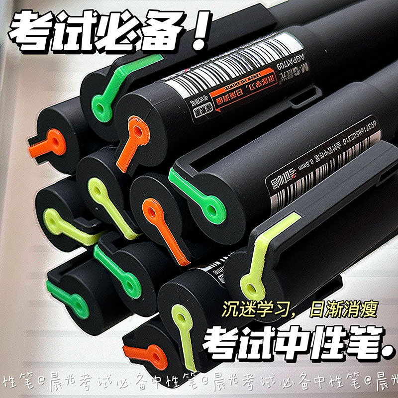晴耕雨读刷题笔专用高颜值速干按动中性笔ins黑笔圆珠笔ST笔学生用考试笔顺滑0.5笔芯黑色水性签字笔水笔碳素