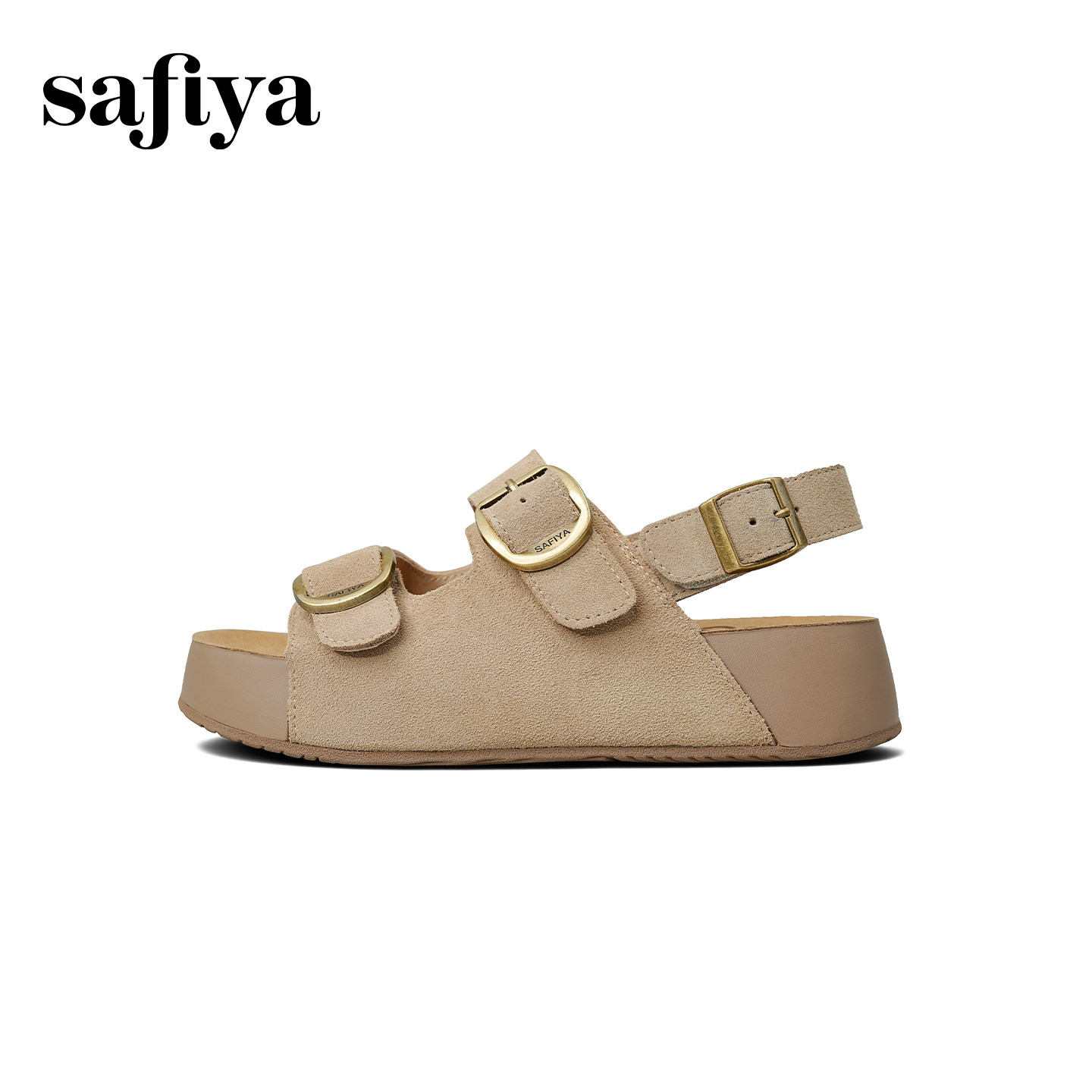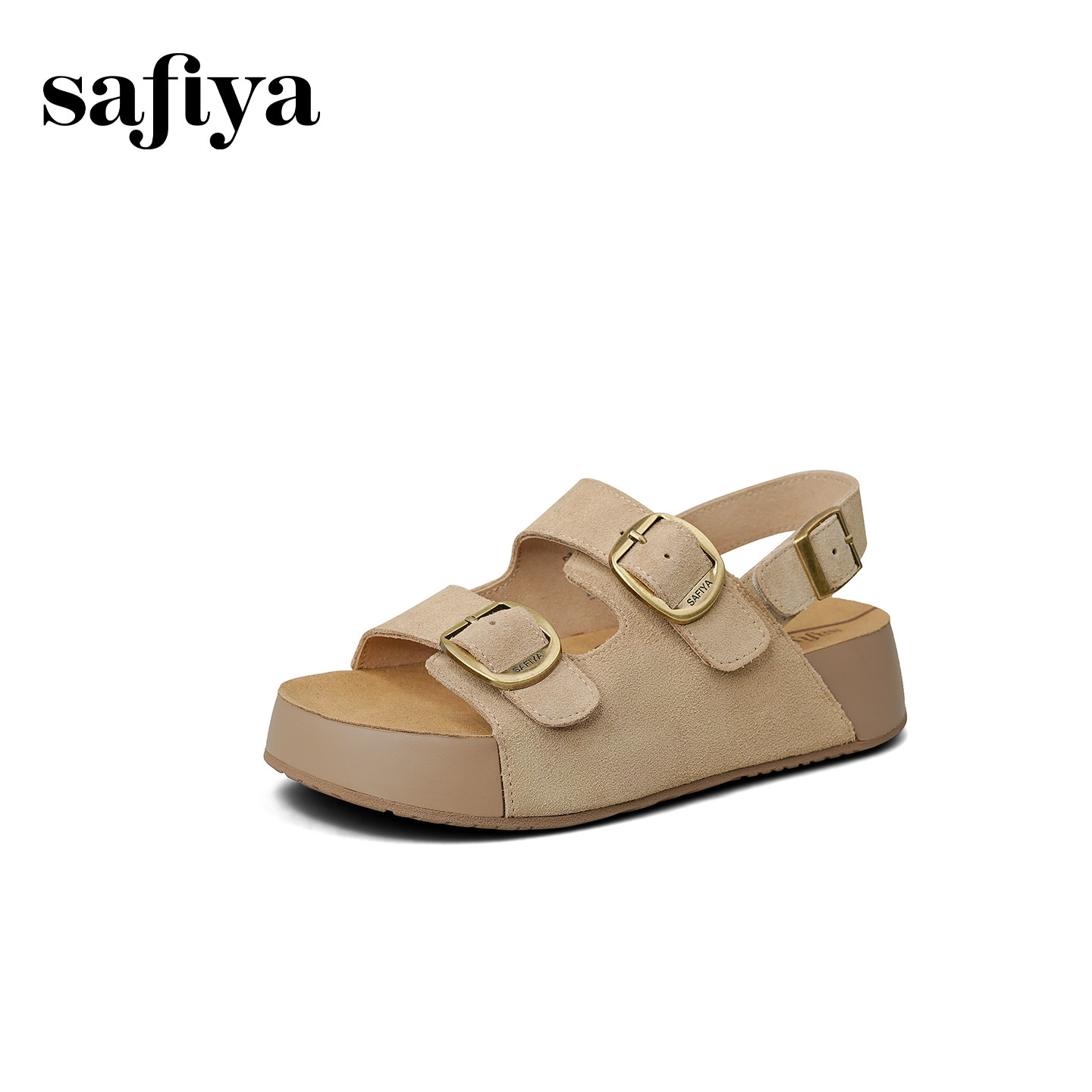 索菲娅2026夏季新品魔术贴松糕底百搭露趾懒人双扣勃肯鞋凉鞋女