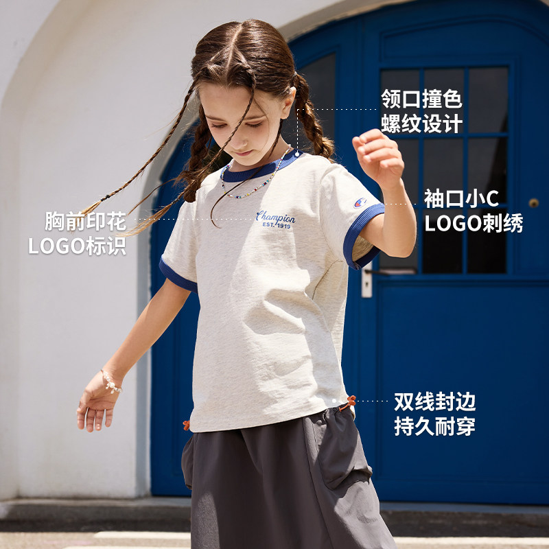 【抗菌】Champion冠军男女童亲子装纯棉消臭短袖T恤26年夏新款