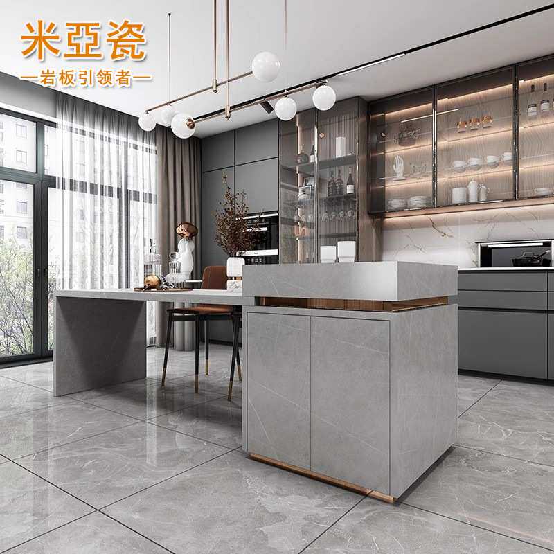 多功能岩板亮面轻奢风格家用厨房岛台岛台餐桌一体茶桌小户型家居